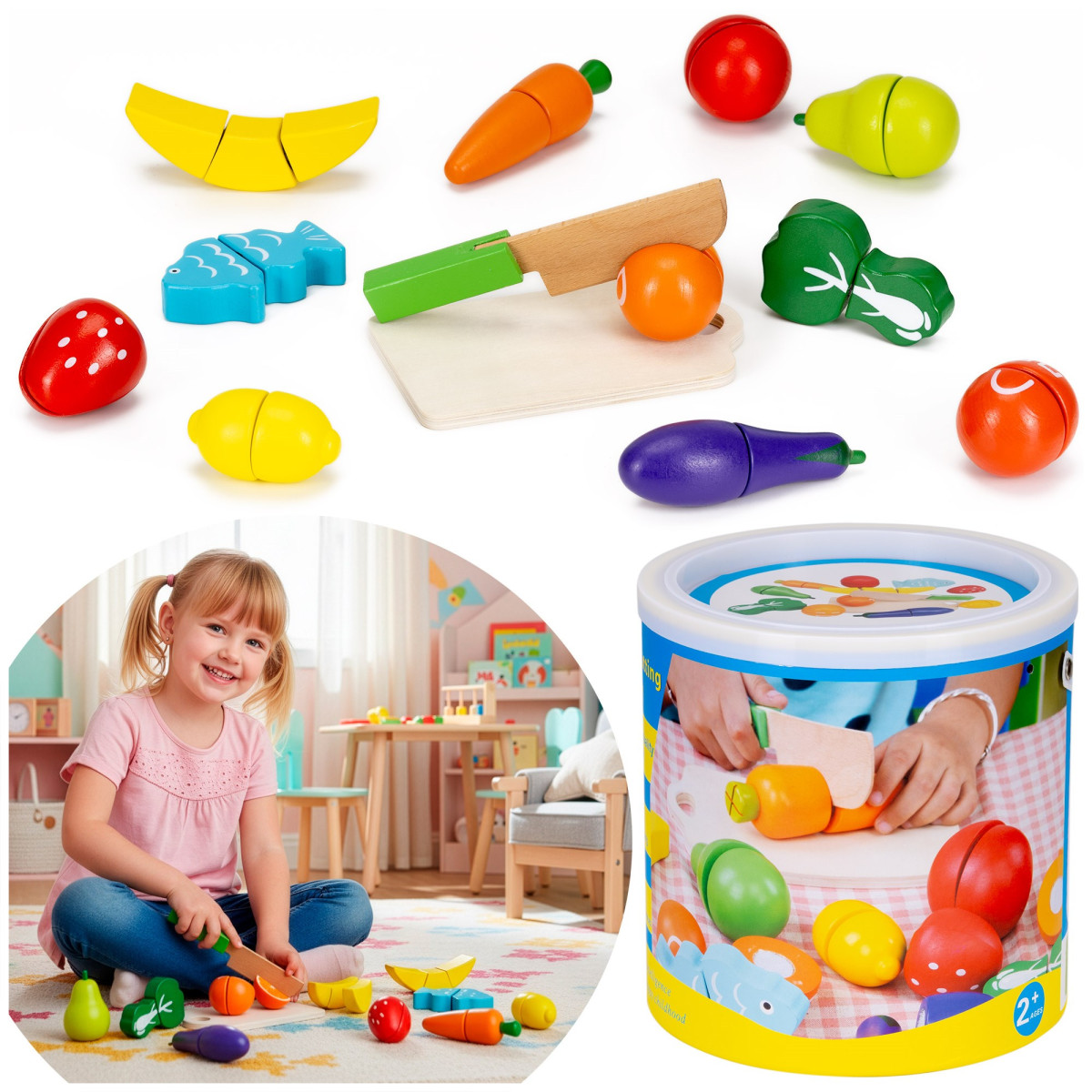 • Tipas: medinių žaislų rinkinys - vaisių ir daržovių pjaustymas