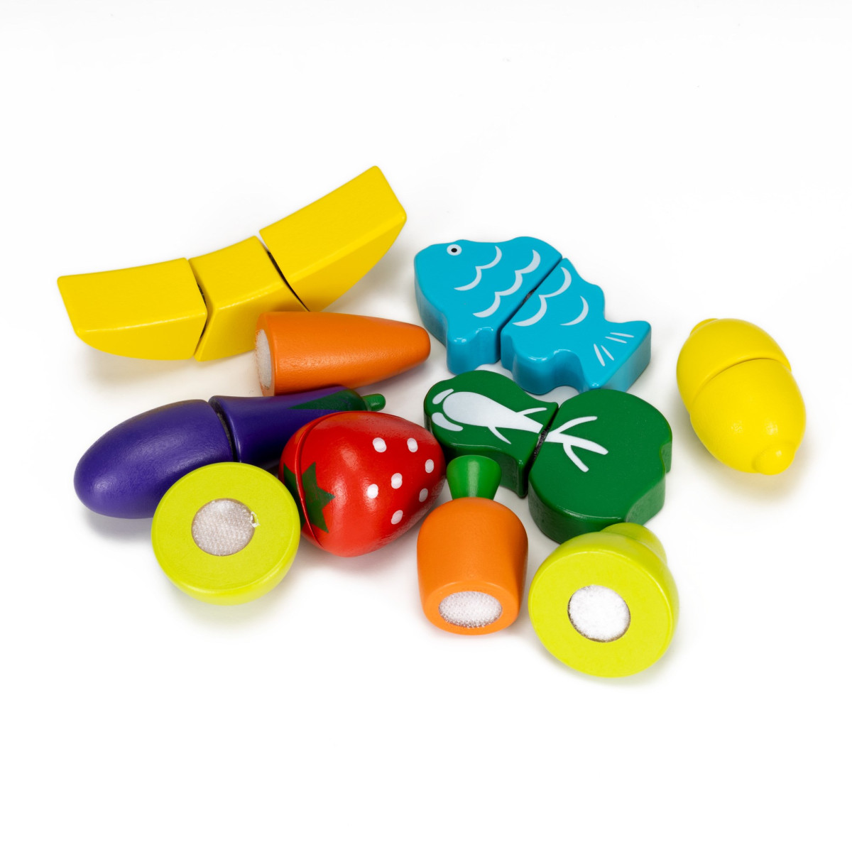 Medinių žaislų rinkinys - vaisių ir daržovių pjaustymo žaidimas Springos KG0058