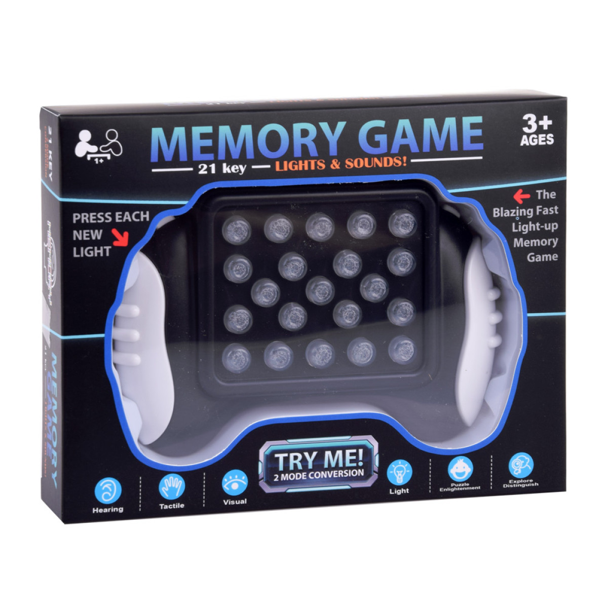 Atminties elektroninis žaidimas GR0628 yra puiki priemonė lavinti atmintį ir koncentraciją. Žaidimas suteikia galimybę žaisti tiek vienam, tiek su kitais, rengiantiems atminties čempionatą.