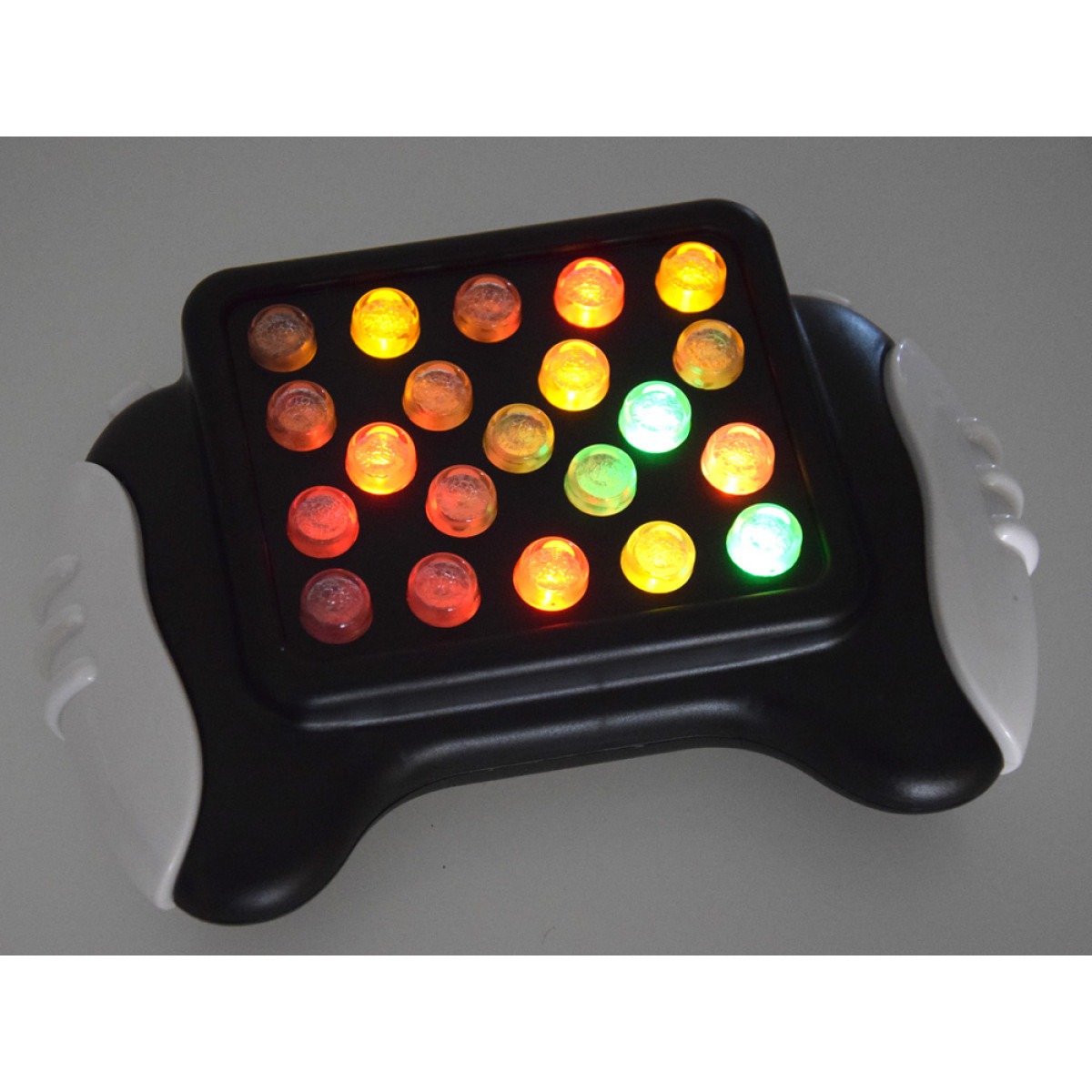 Konsolės panelėje šviesos diodai užsižiebs paeiliui. Pradėsime nuo 5 elementų, kuriuos turėsime atsiminti, o kiekviename ture reikės prisiminti vienu šviečiančiu laukeliu daugiau. Turime tik vieną galimybę atlikti užduotį teisingai. Jei pavyks, išgirsime linksmą melodiją ir konsolė švies visomis spalvomis. Jei padarysime klaidą, išgirsime pralaimėjimo signalą. Norint pradėti naują žaidimą, vėl reikia paspausti mygtuką dešinėje konsolės pusėje.