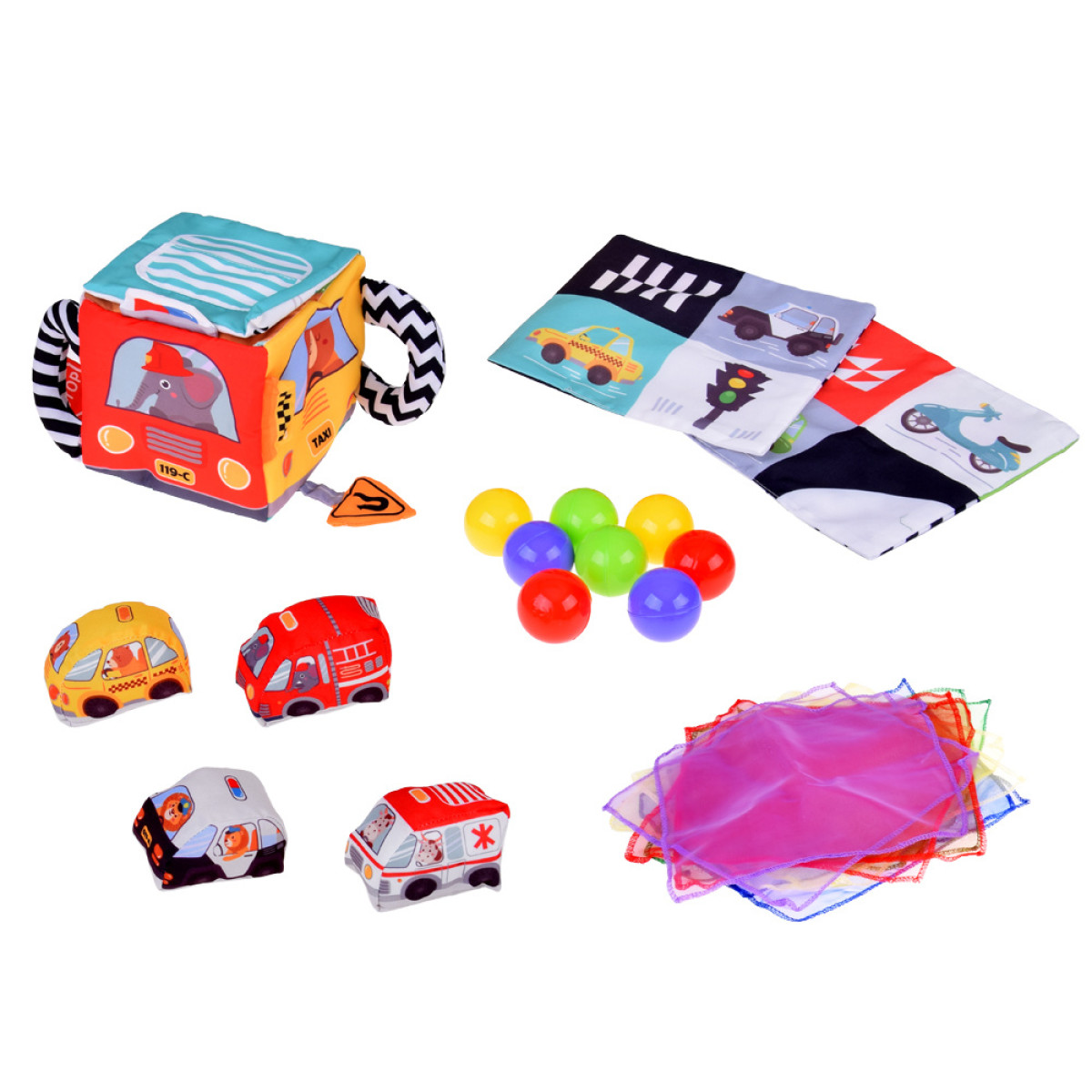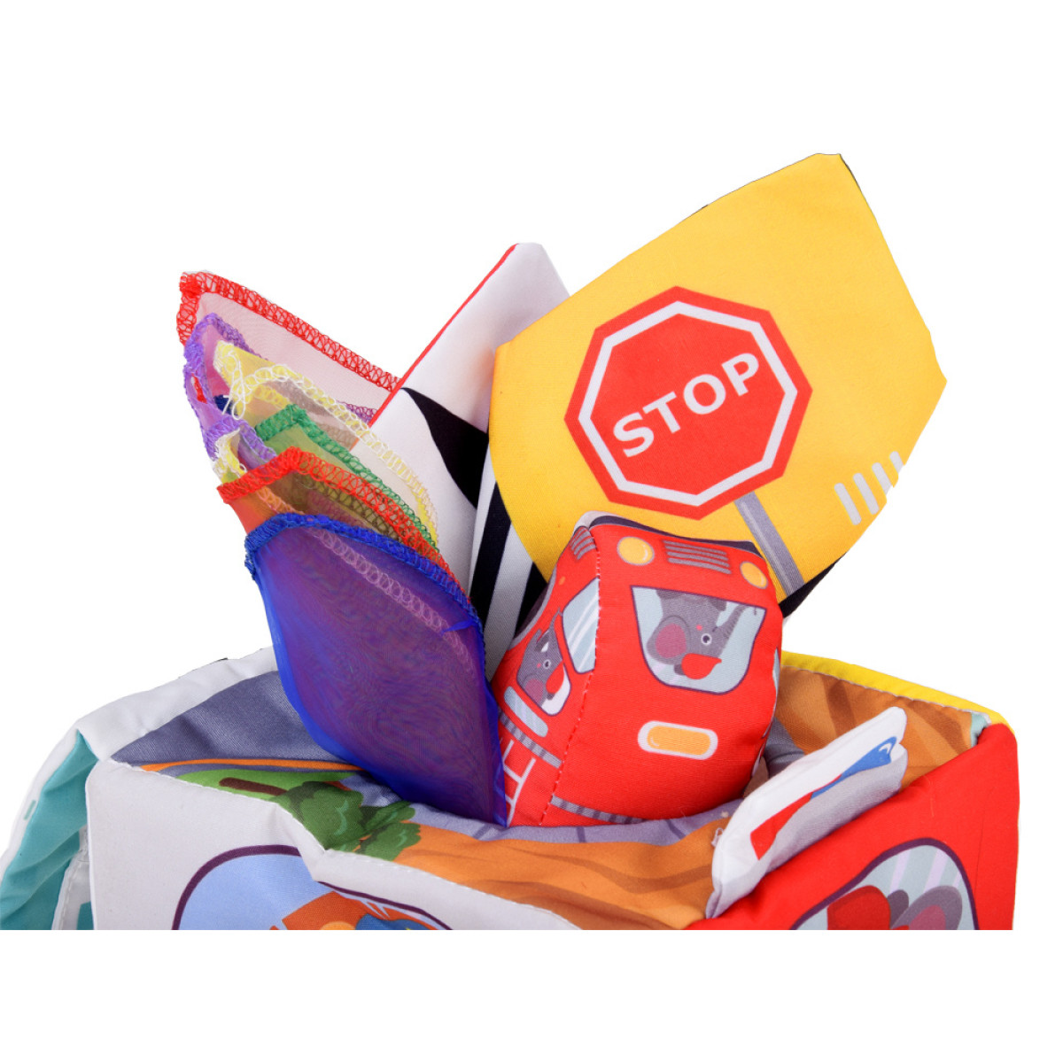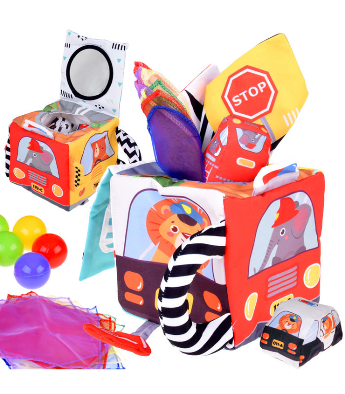 Minkšta Sensorinė Kubo Transporto Priemonės Montessori su Servetėlėmis