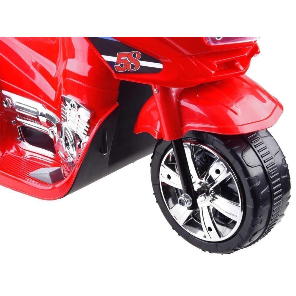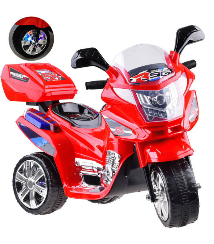 Sportinis motociklas vaikams su LED apšvietimu leidžia vaikui būti matomam važinėjant ir žaidžiant. Sportinis motociklo dizainas patiks kiekvienam mažam greitų transporto priemonių gerbėjui. Šio motociklo kompaktiškas dydis puikiai tinka važinėti tiek namuose, tiek lauke. Motociklo ratai padengti juosta, kuri slopina vibracijas ir triukšmą važiuojant netolygiais paviršiais. Privalumas yra šviečiantys žibintai priekyje, šonuose ir ratuose, sukuriantys įspūdingą vizualinį efektą. Vaikas lengvai gali įlipti ir išlipti, kas leidžia savarankiškai mėgautis žaislu. Gale esantis bagažinė leidžia saugoti būtiniausius daiktus.