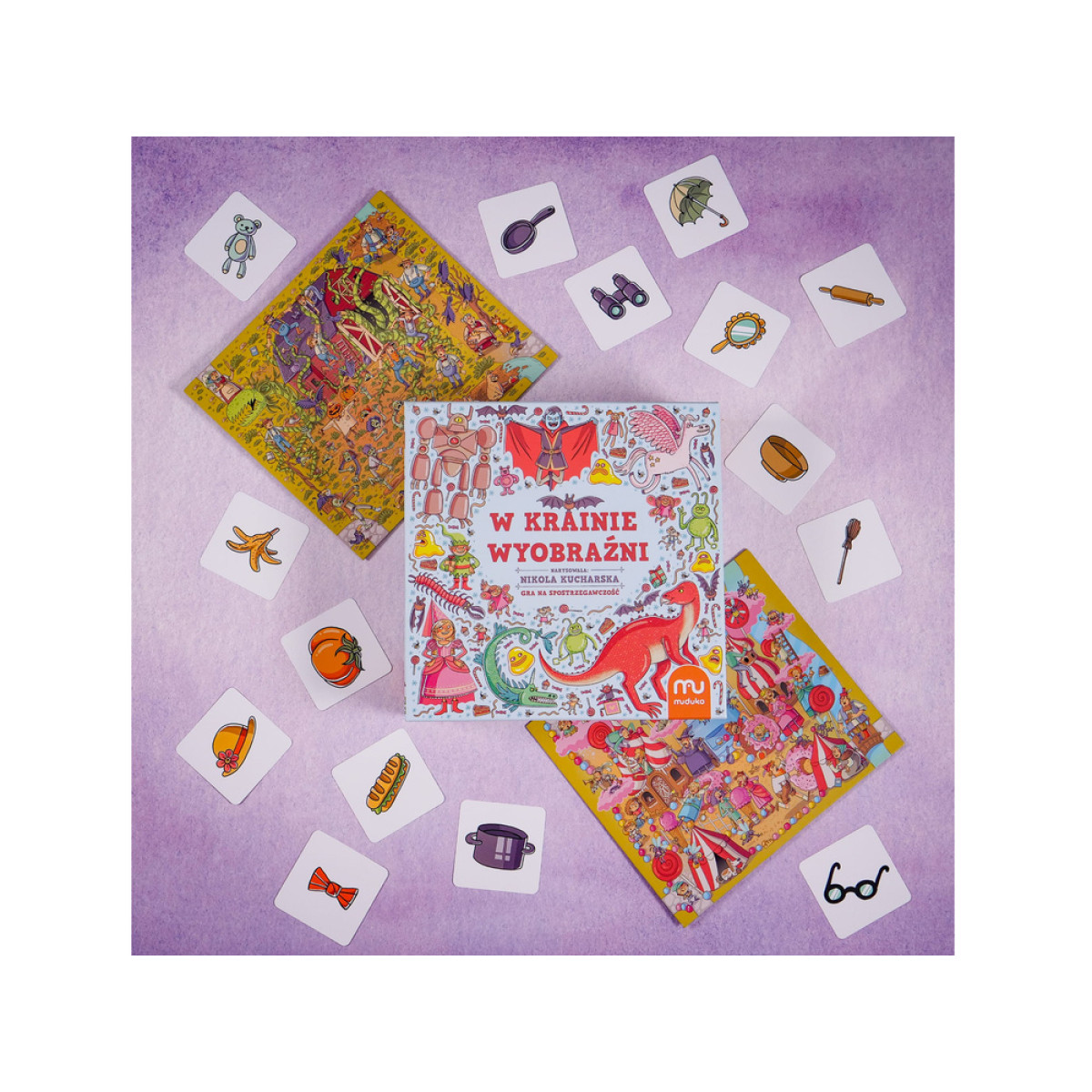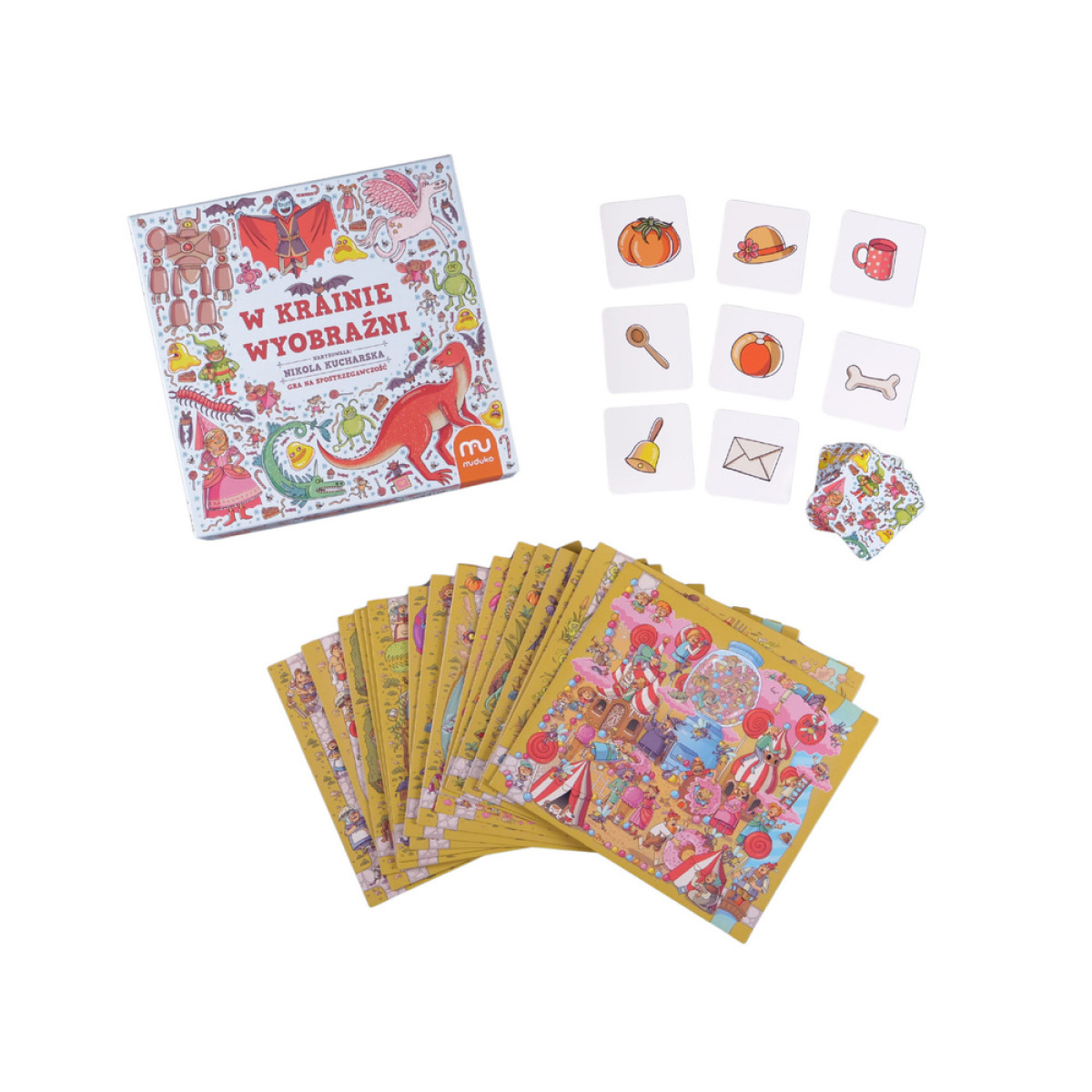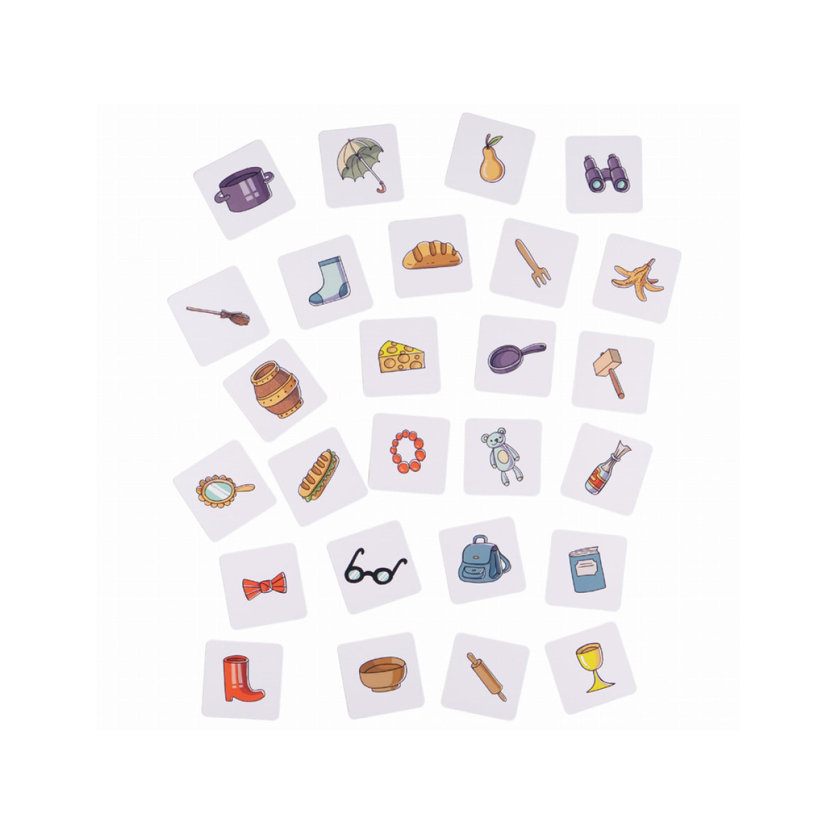 - 45 kvadratinės kortos su objektais, kuriuos reikia surasti