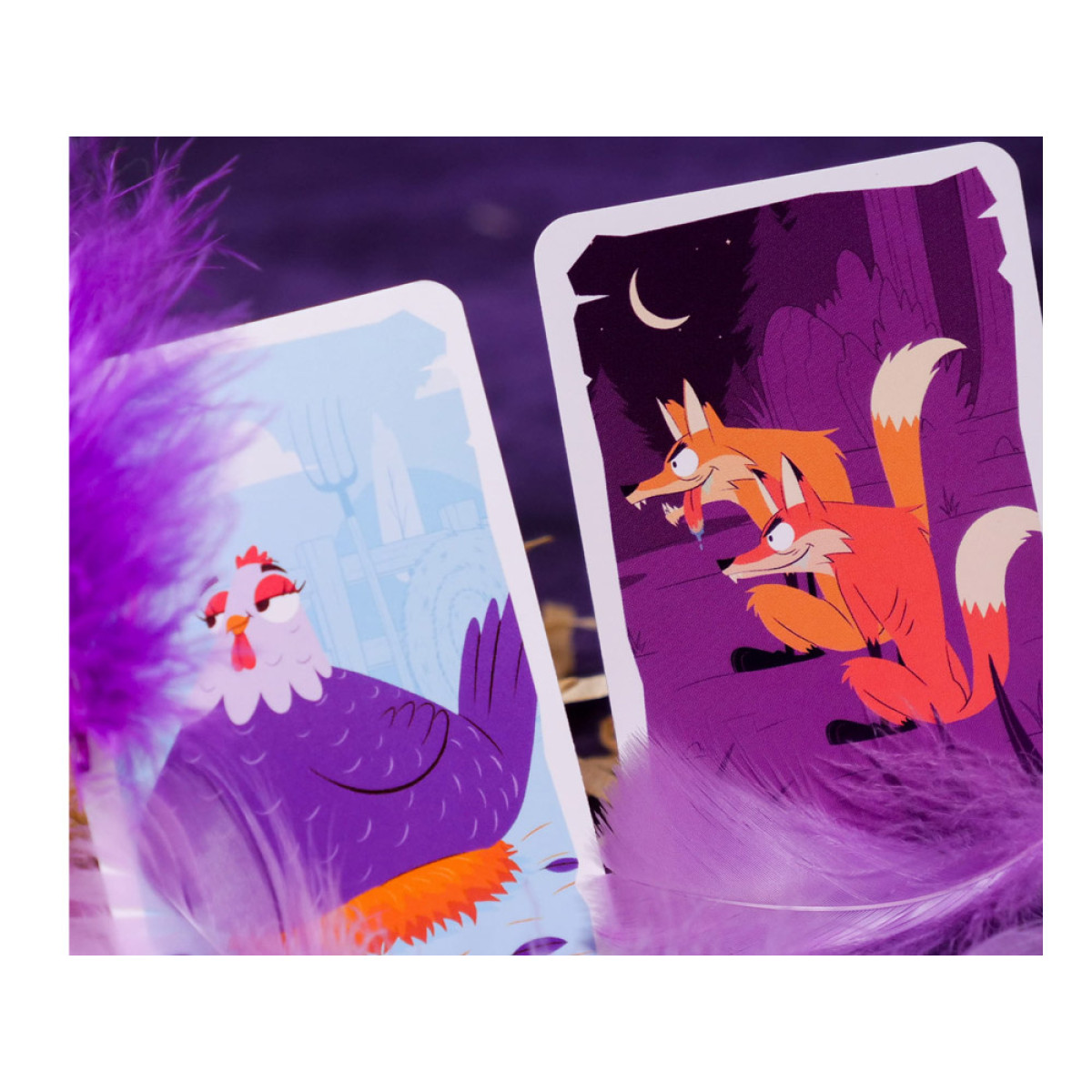„Šios vištos taps tikru galvos skausmu!“ – tai dinamiškas kortų žaidimas, kuriame nepakanka tik rinkti tinkamas kortas, bet taip pat reikia atidžiai stebėti varžovus ir efektyviai juos sabotuoti. Žaidime atsiranda ne tik paprastos vištos, bet ir specialios veiksmo kortos, leidžiančios trukdyti varžovams. Galite įtraukti tornadus, kurie sumaišo vištides, siųsti netikras vištas ir netgi iškviesti lape, didžiausią vištų priešą!