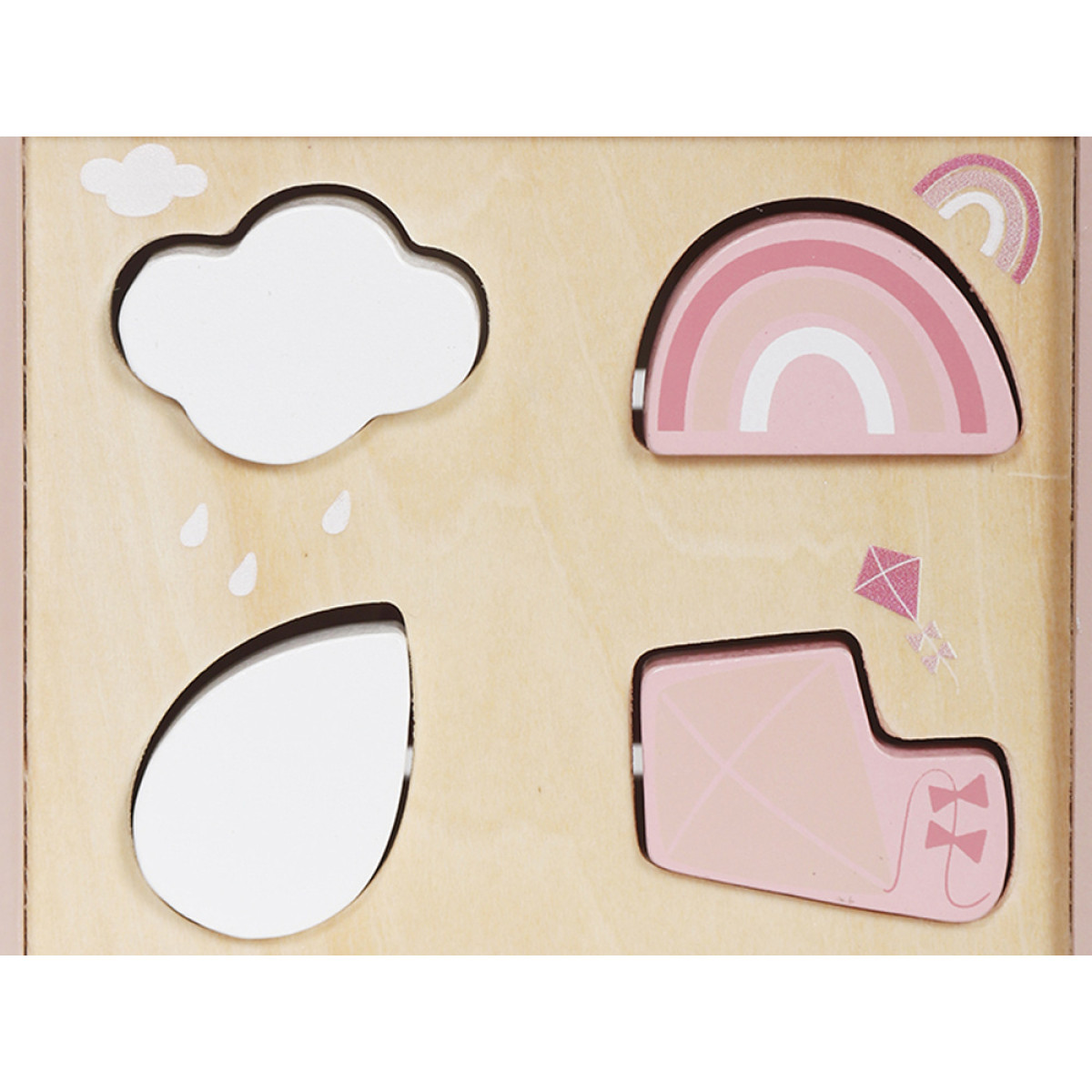 • Formų rinkinys: Žaislas turi skirtingų formų ir spalvų kaladėles, kurias vaikas gali sudėti į atitinkamas angas, taip skatindamas formų atpažinimą ir regėjimo-rankų koordinaciją.