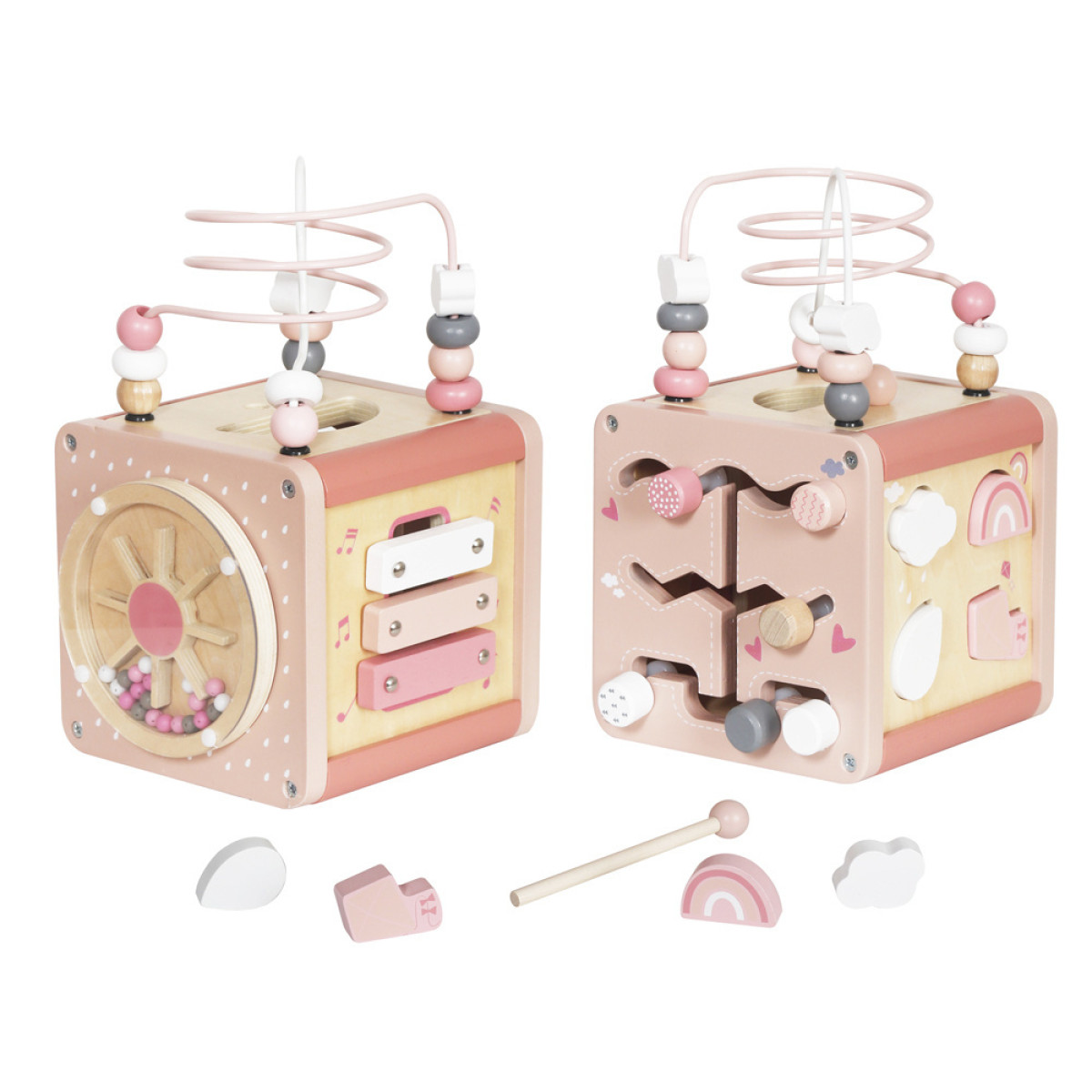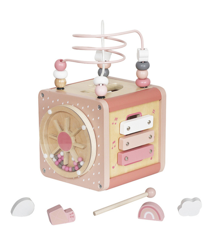 Daugiafunkcinis medinis kubas yra edukacinis žaislas, sukurtas remiantis Montessori metodika, skirtas mažų vaikų vystymuisi skatinti. Tai interaktyvus kubas su įvairiais elementais, kurie padeda lavinti vaiko motorinius įgūdžius, loginį mąstymą ir rankų-akių koordinaciją.