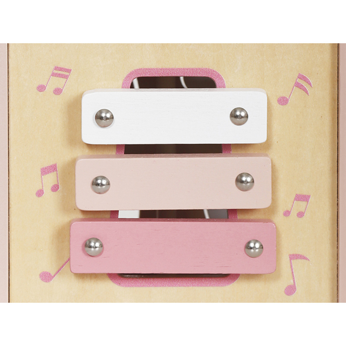 • Muzikos instrumentas: Vienoje iš pusių yra nedidelis ksilofonas, leidžiantis vaikui tyrinėti garsus ir ritmus.