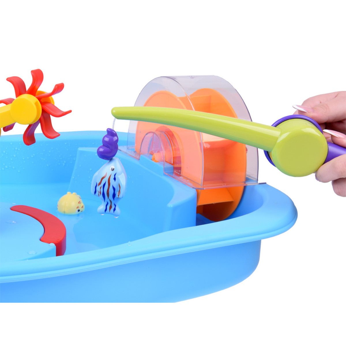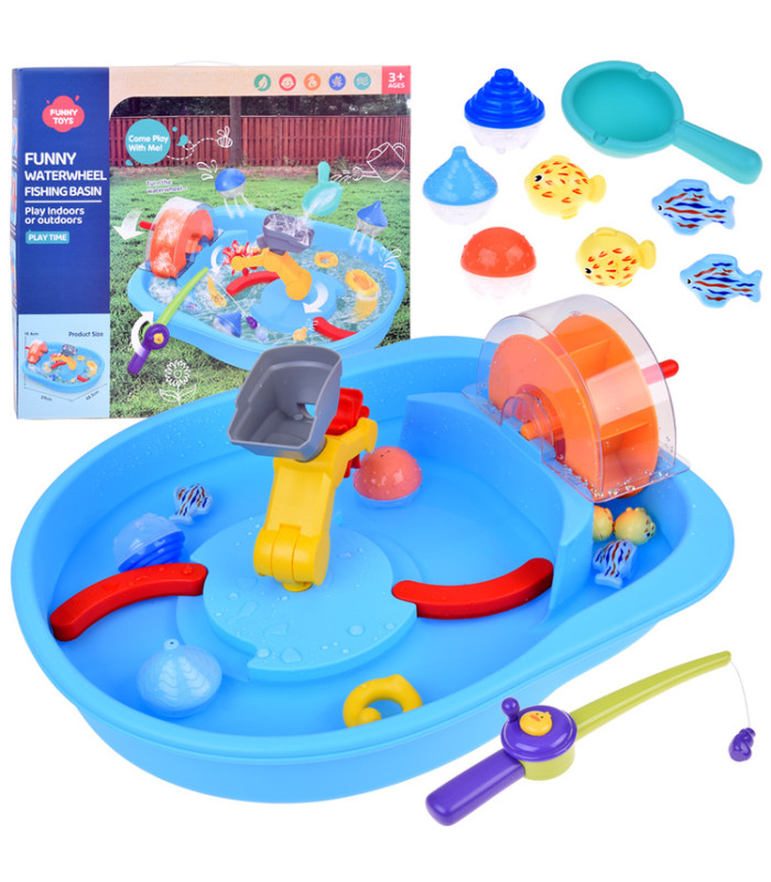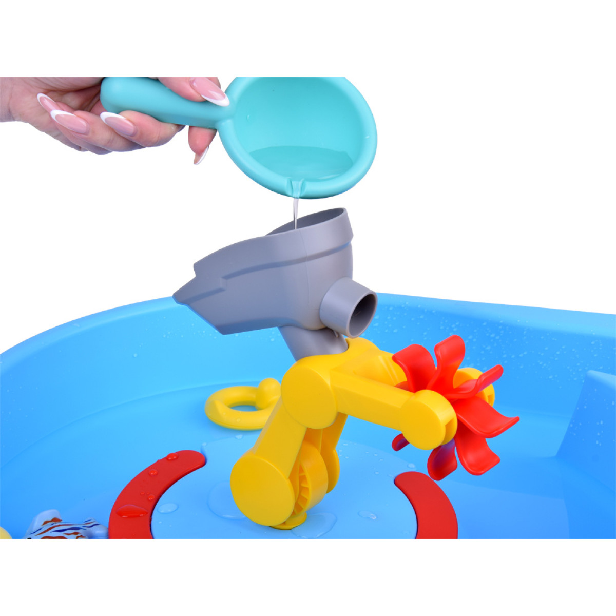 Mėlynas vandens staliukas su malūno ratu + žvejybos priedai