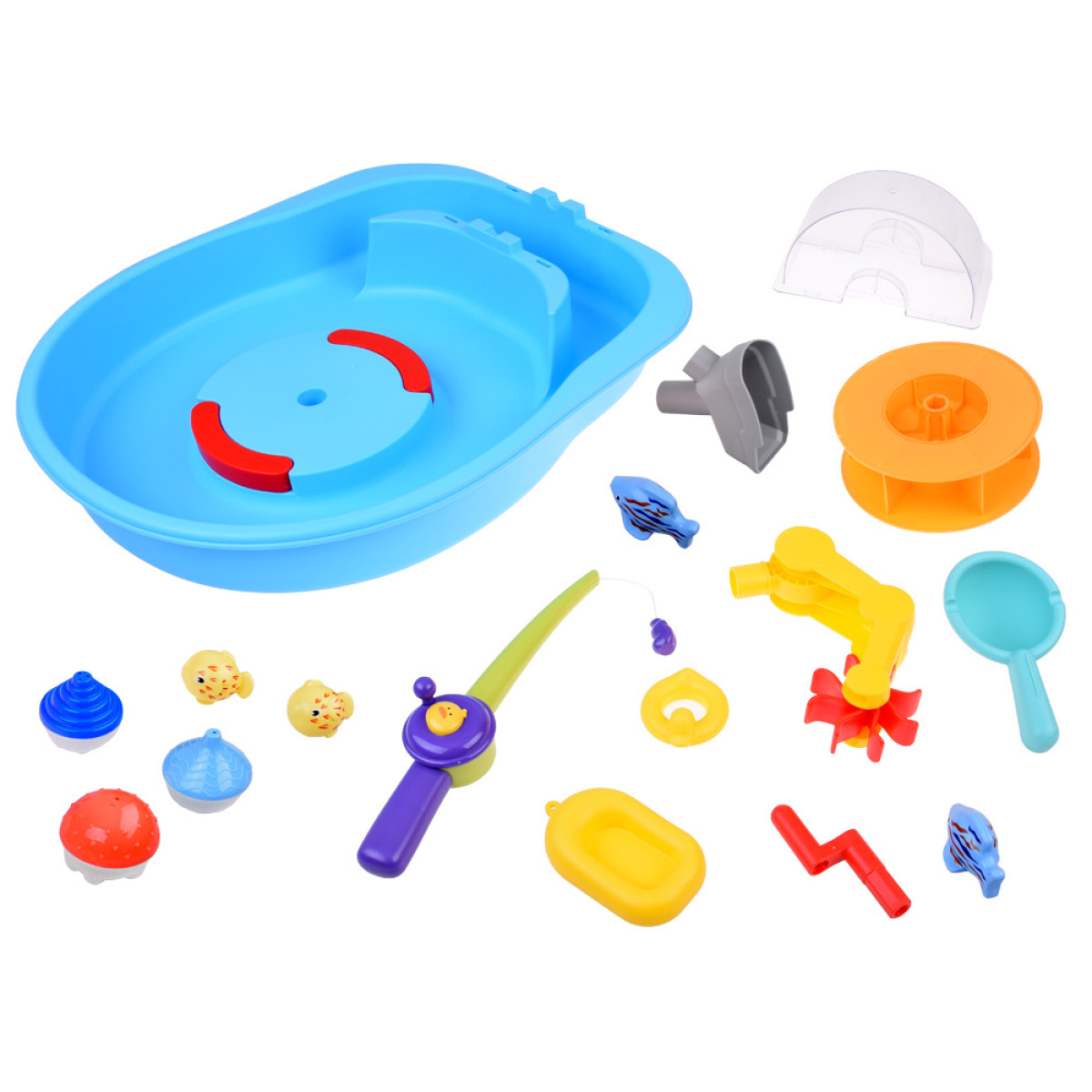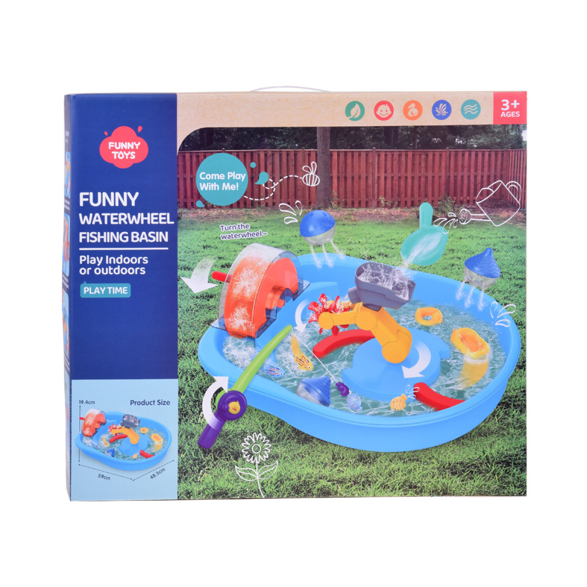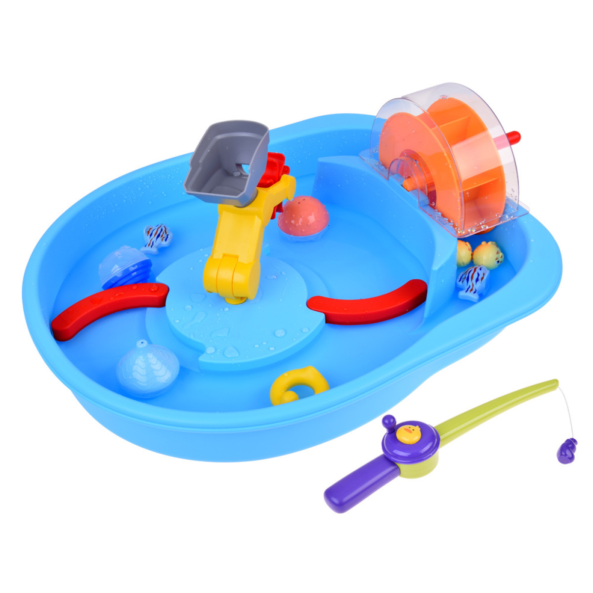Mėlynas vandens staliukas su malūno ratu + žvejybos priedai