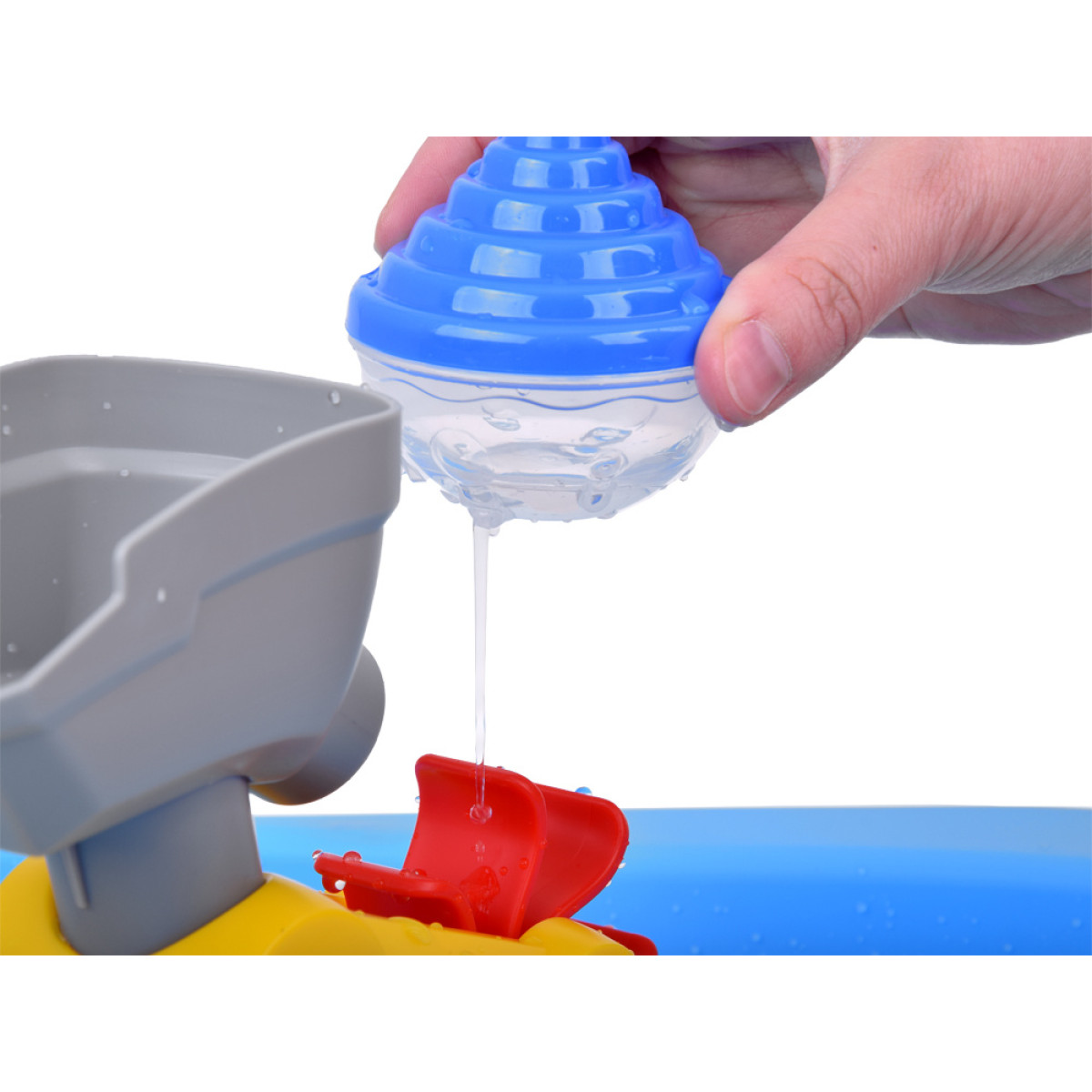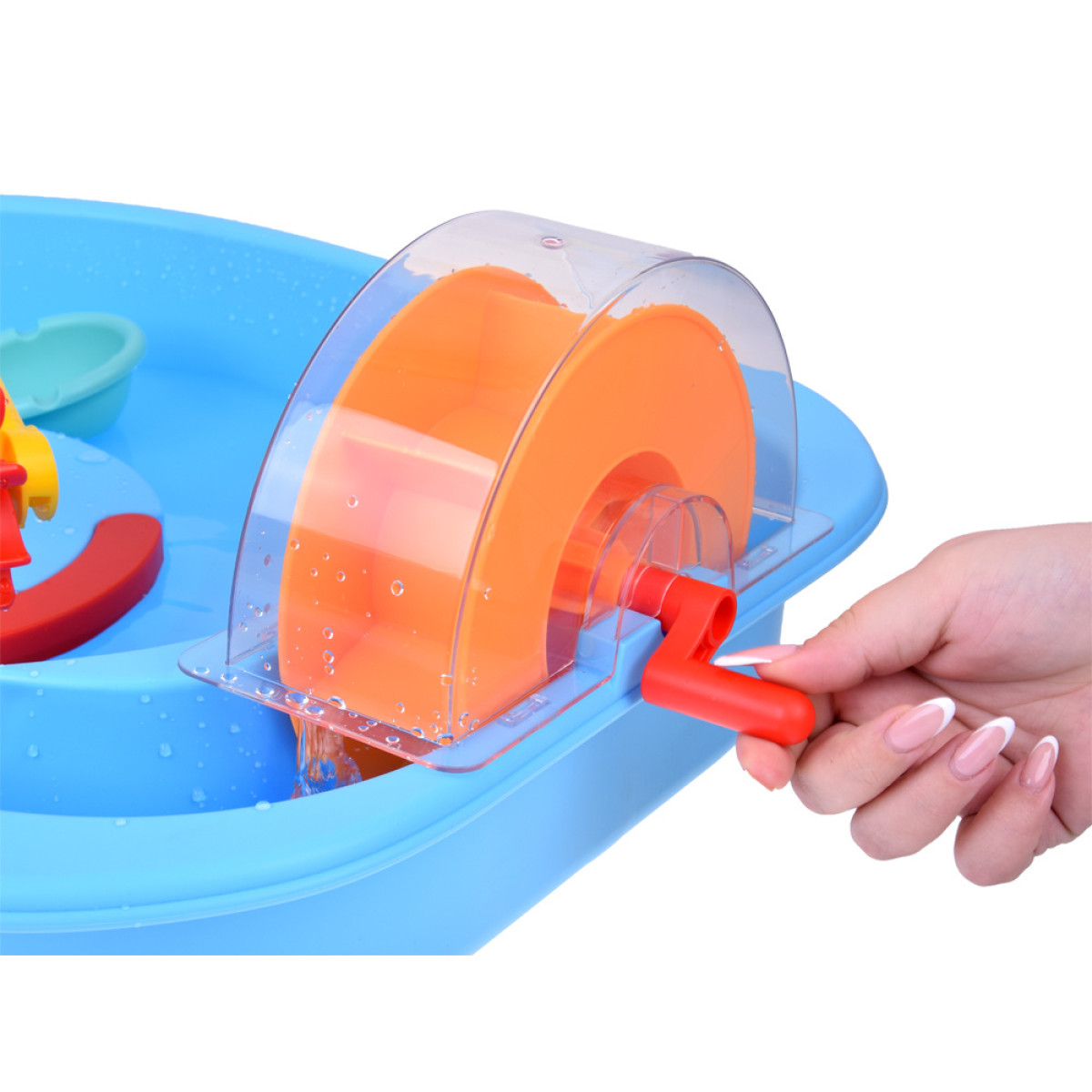 Mėlynas vandens staliukas skirtas stebėjimui ir interakcijai - gali būti naudojamas tiek namuose, tiek lauke - sode, vonioje ar net paplūdimyje.