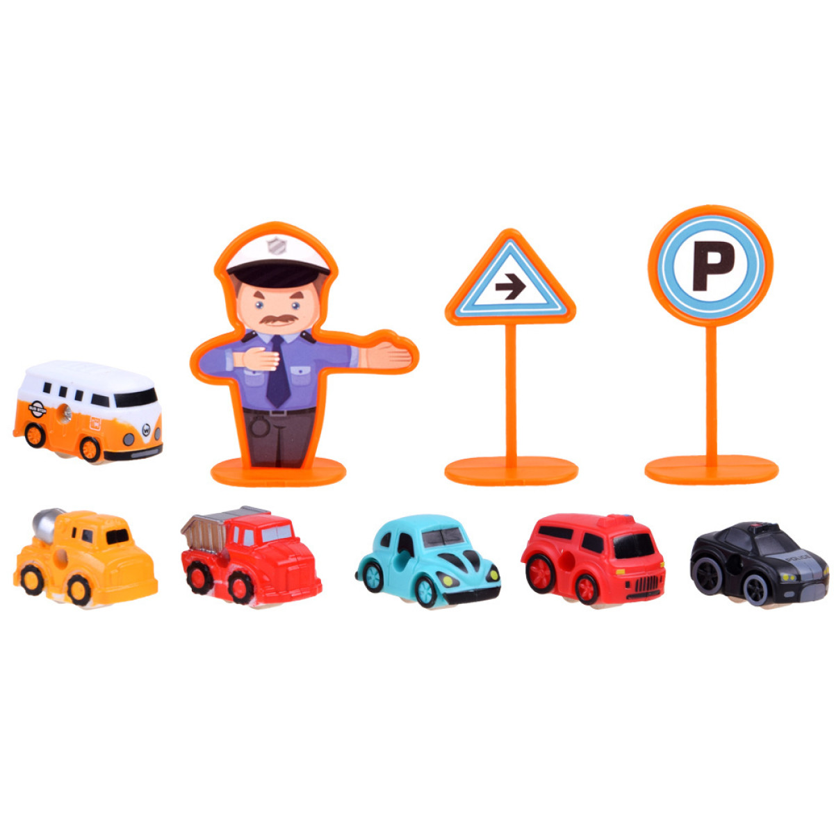 Visas komplektas pagamintas iš plastiko maloniais akiai spalvomis. Jį papildo spalvoti informaciniai ženklai, apsaugininko figūrėlė ir lipdukai, todėl žaislas atrodo kaip tikras garažas. Komplektas supakuotas į spalvingą, estetišką dėžutę, puikiai tinkančią dovanai.