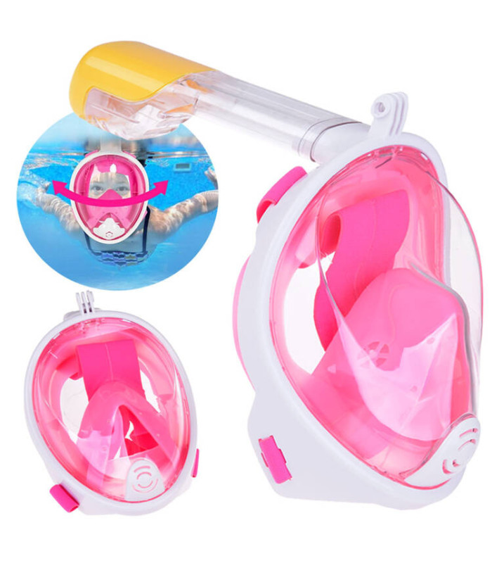 Patogi rožinė snorkelingo ir nardymo kaukė