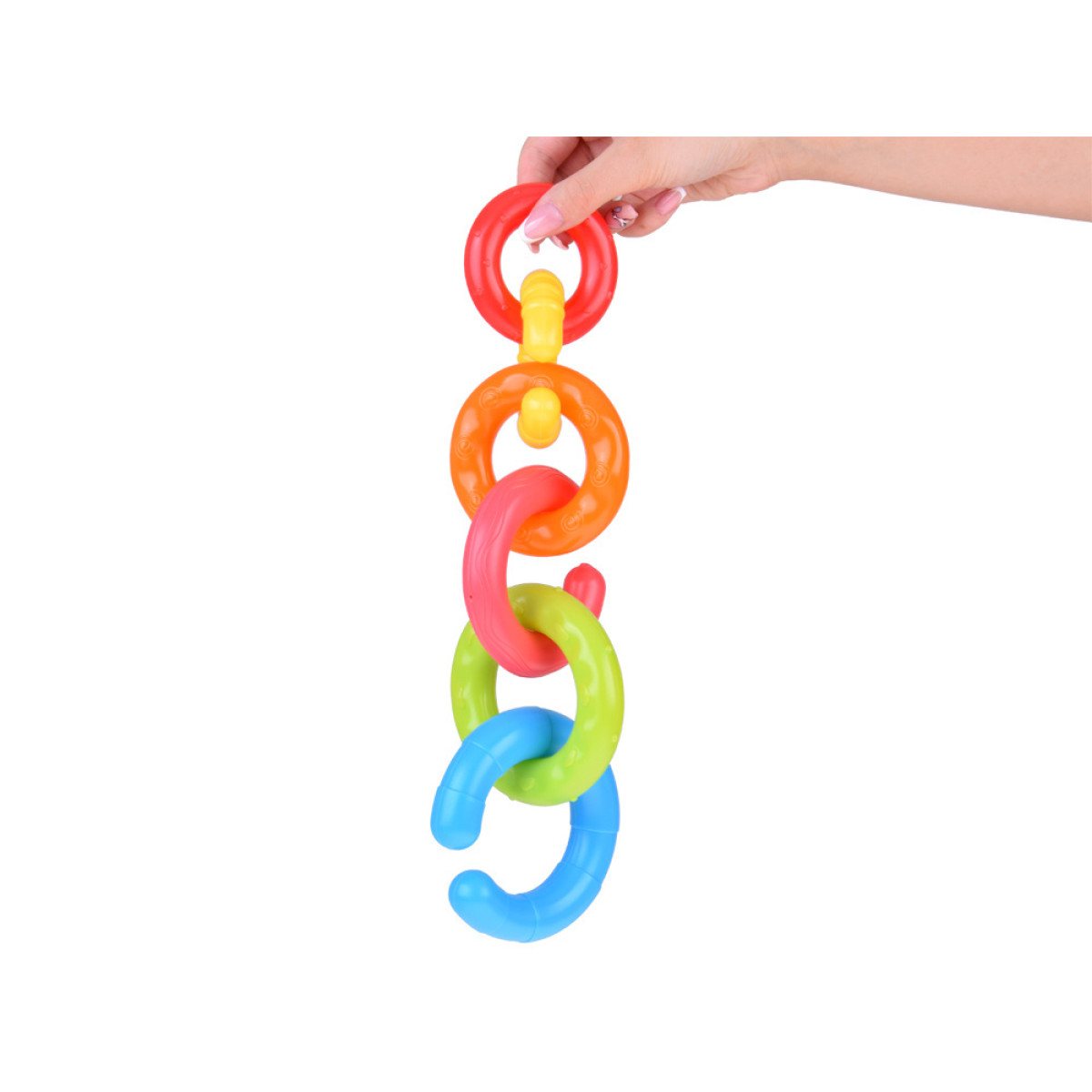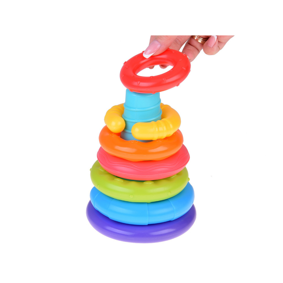 yra idealus produktas vaikams nuo 6 mėnesių. Spalvinga piramidė, sudaryta iš šešių elementų su įvairiais raštais ir tekstūromis, patrauks jūsų vaiko dėmesį ir patenkins jo smalsumą apie pasaulį. Žaislas ne tik skatina vaizduotę, bet ir padeda lavinti regos ir motorikos koordinaciją. Žiedai pagaminti iš minkšto plastiko. Įvairios tekstūros ir spalvos stimuliuoja jūsų vaiko jusles ir skatina tolesnius atradimus.