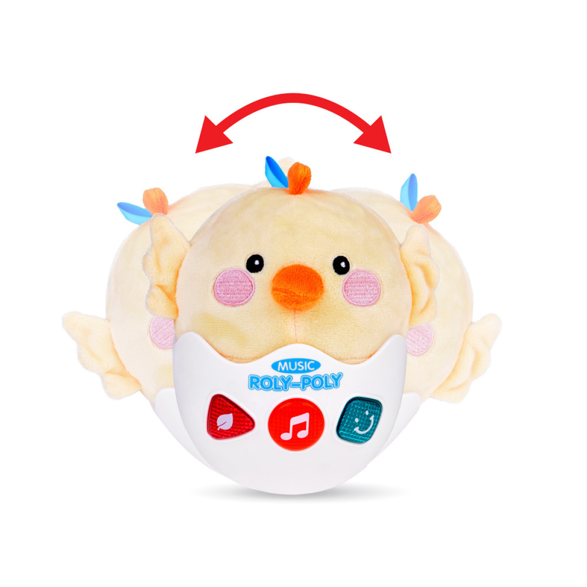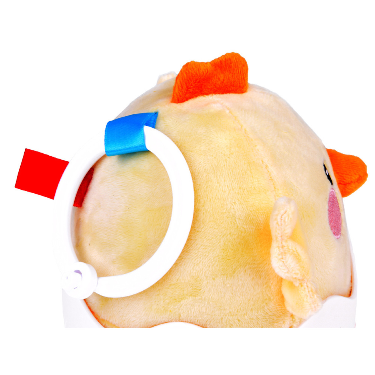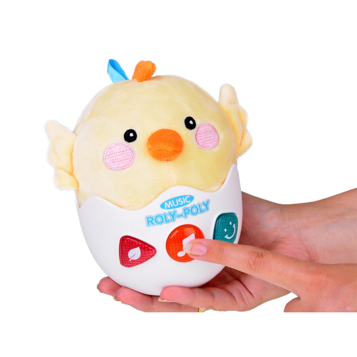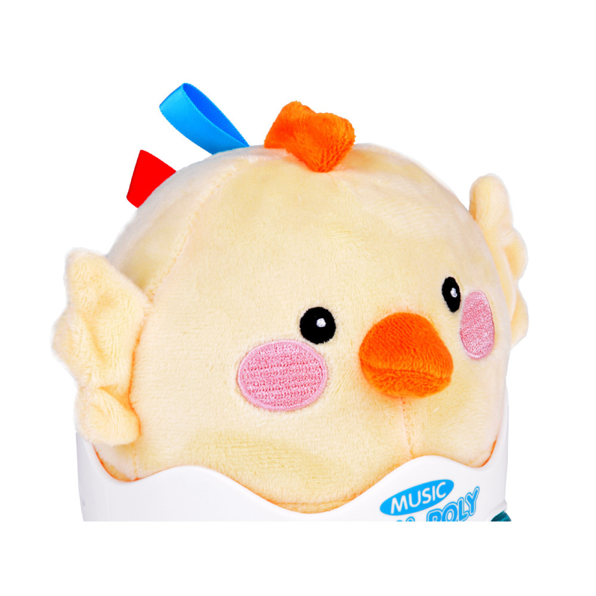 Šis mielas gyvūnėlis yra saulėtos spalvos, turi mažus sparnelius, apvalias akytes, rausvą snukutį ir oranžinį snapelį. Pusė jo pagaminta iš minkštos, maloniai liečiamos medžiagos, o kita pusė – iš plastikinio korpuso su spalvingais mygtukais. Dėl aerodinaminės formos viščiukas gali suktis į visas puses, pakanka jį švelniai stumtelėti. Ant galvos ir nugaros yra dvi juostelės, prie kurių galima pritvirtinti pridedamą laikiklį.