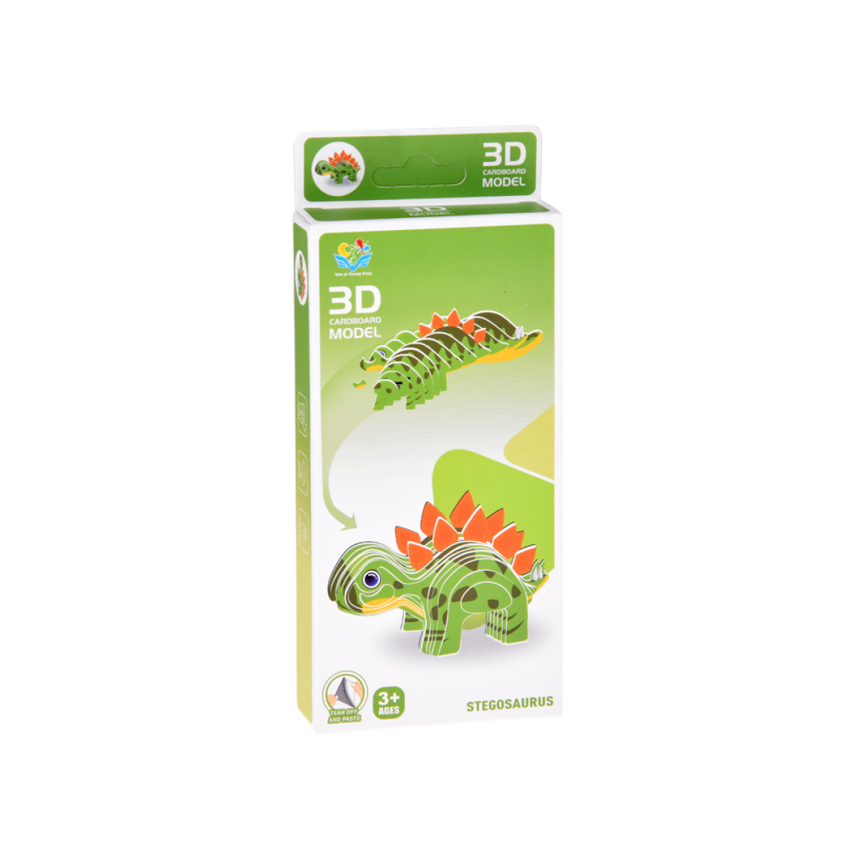 Statykite savo unikalų, žavų dinozaurą! Kartoninis 3D modelis yra kūrybinė dėlionė, leidžianti vaikui savarankiškai surinkti trimačio žavaus žalio dinozauro stegozauro figūrėlę. Elementai pagaminti iš spalvoto, patvaraus kartono, kurį lengva sujungti – tereikia atplėšti ir vadovautis instrukcijomis.