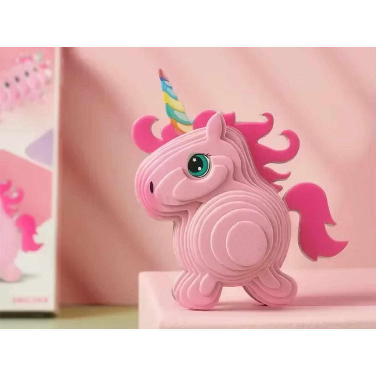Nuspalvink savo pasaulį su šiuo unikaliu 3D kartoniniu vienaragio modeliu! Šis modelis suteikia galimybę vaikams patiems surinkti trimačio vienaragio figūrą. Kartoninės dalys yra spalvingos ir tvirtos, lengvai susijungiančios – tiesiog sekite instrukcijas ir mėgaukitės!