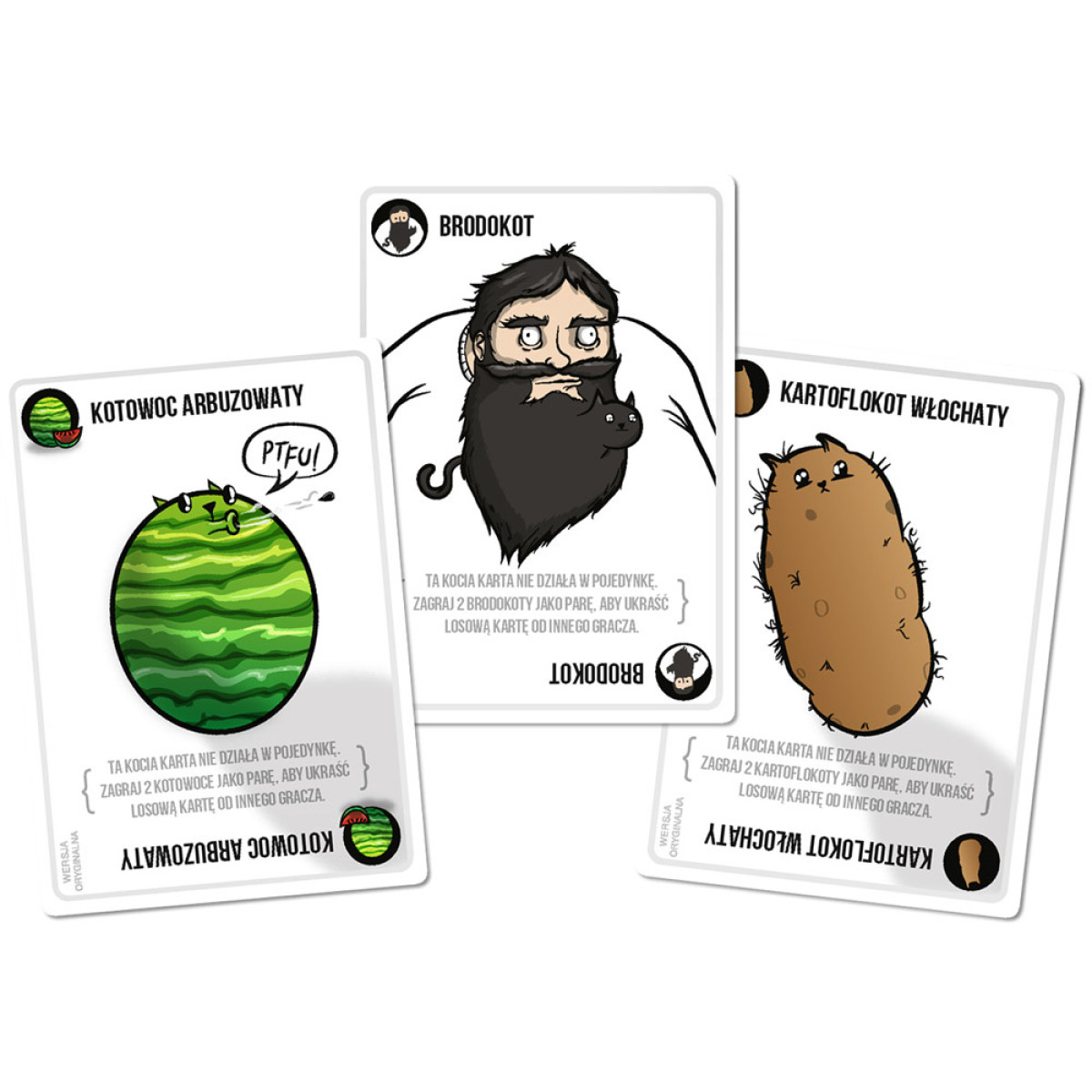 yra kortų žaidimas, kuris remiasi rizika ir strategija - žaidėjai atsitiktinai traukia kortas, o tikslas yra išvengti sprogstančių kačiukų.Nors pradžioje gali atrodyti, kad viskas priklauso nuo sėkmės, iš tiesų laimėjimo raktas yra protingas kortų valdymas, leidžiantis išvengti pavojų. Galite naudoti kortas, tokias kaip „Kačiuko išminavimas“, kurios leidžia atšaukti sprogimą, arba kortas, keičiančias žaidimo eigą, kad perkeltumėte riziką ant varžovų.