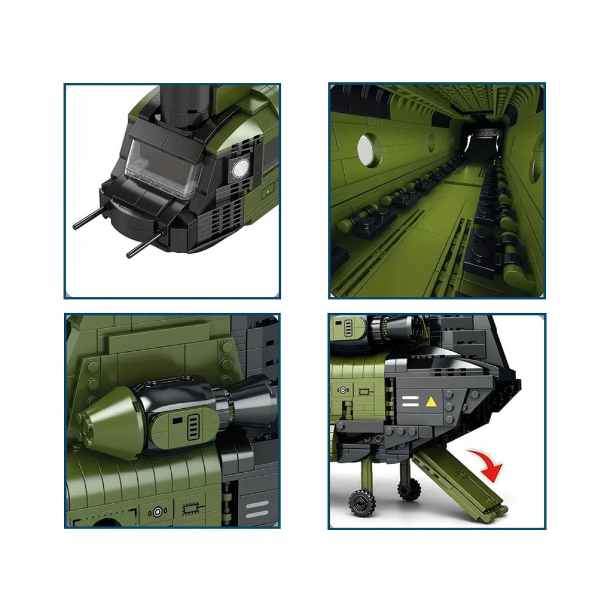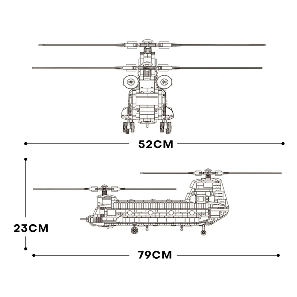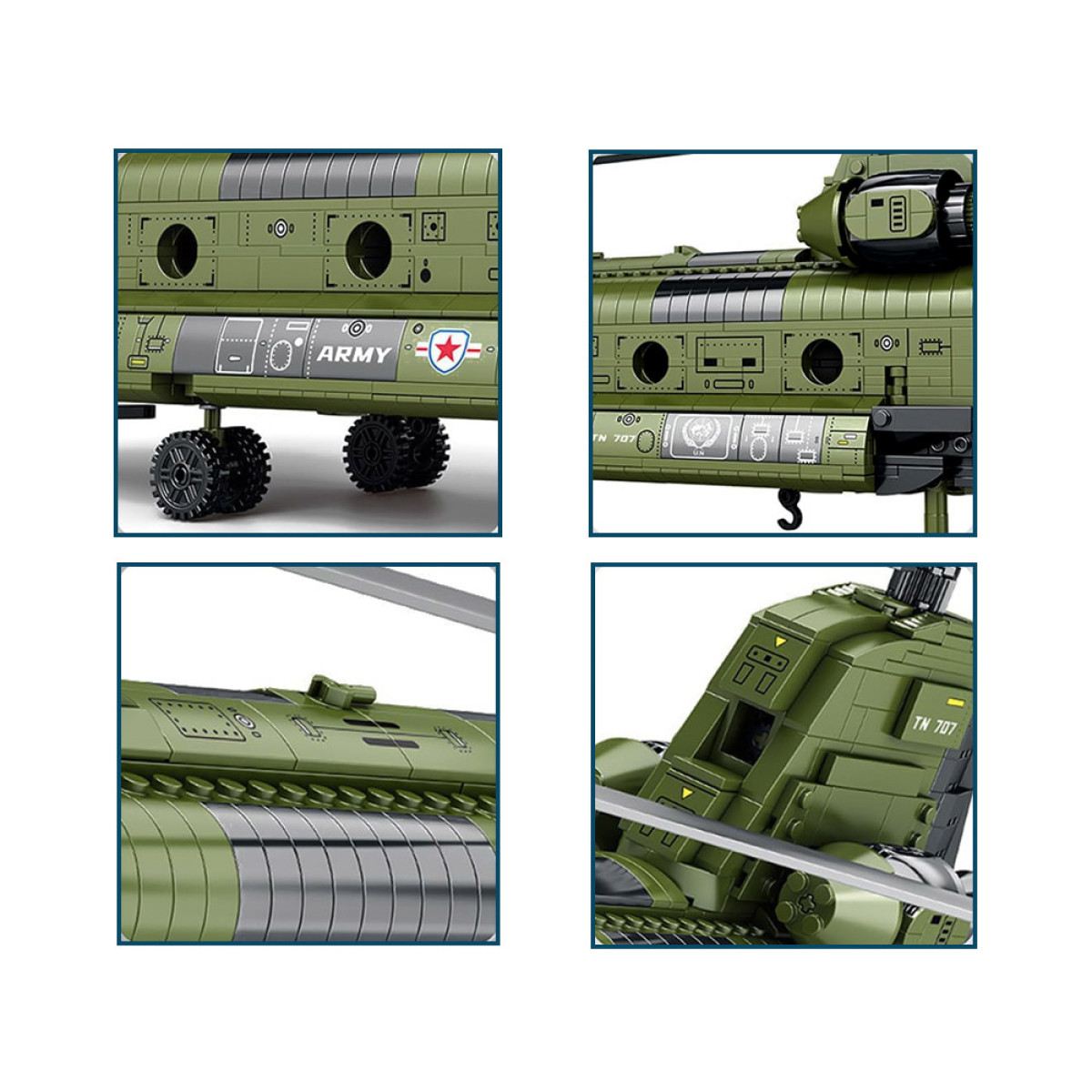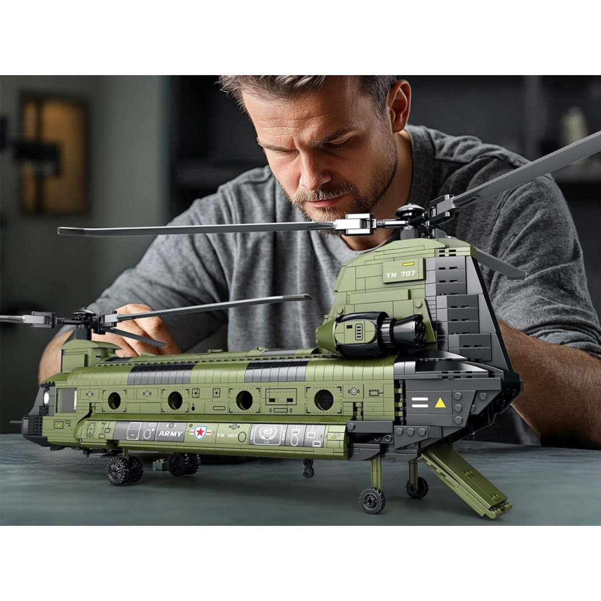 Šio modelio statyba yra tikras malonumas karinės technikos, modelių kūrimo ir technologijų entuziastams. Kiekvienas elementas kruopščiai suprojektuotas, kad sukurtų tvirtą ir tikrovišką konstrukciją, tiksliai atitinkančią legendinio sraigtasparnio CH-47 Chinook išvaizdą. Tai ne tik blokelių rinkinys – tai unikali statymo patirtis, teikianti pasitenkinimą ir įspūdingą modelį kolekcijai.