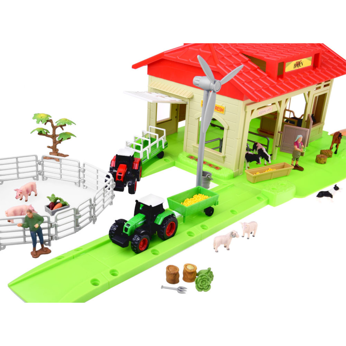 gražus tvarto, gyvūnų aptvaro ir ūkio aplinkos rinkinys suteiks daug smagaus užsiėmimo mažajam ūkininkui. ferma pagaminta iš kokybiško plastiko, o detalės sukurtos kruopščiai ir tikroviškai. gyvūnų figūrėlės atrodo natūraliai, todėl žaidimas tampa dar įdomesnis.