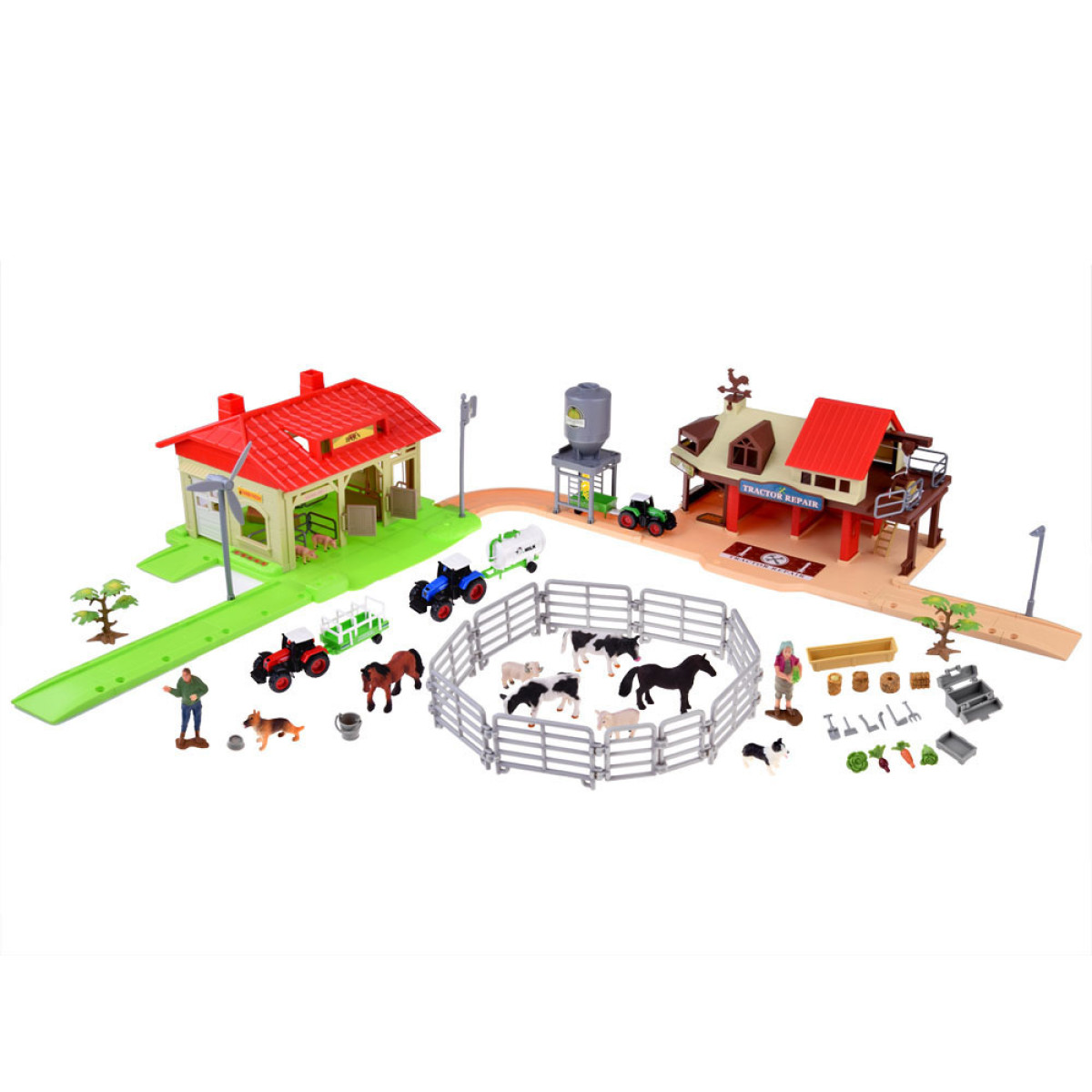 labai didelis ir gausiai sukomplektuotas fermos žaidimų rinkinys patiks kiekvienam mažajam ūkininkui. visas rinkinys pagamintas iš plastiko, pasižymi patraukliomis spalvomis ir tikroviška išvaizda. jame yra daug priedų, reikalingų kasdieniams ūkio darbams, todėl žaidimas tampa dar įdomesnis ir kūrybiškesnis.