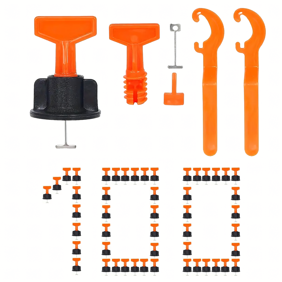 Profesionali plytelių lyginimo sistema su 100 klipsų, veržlių ir 2 laikikliais