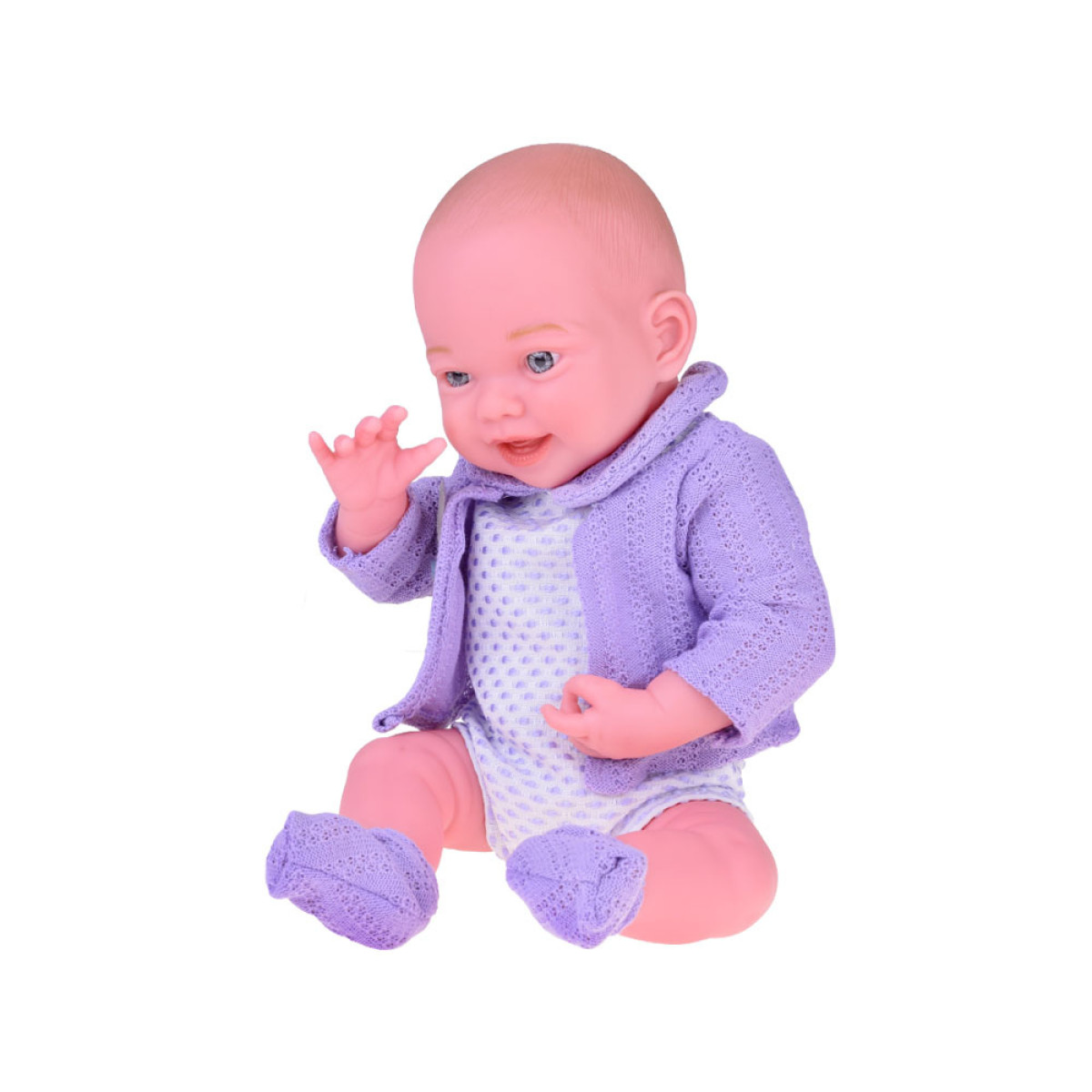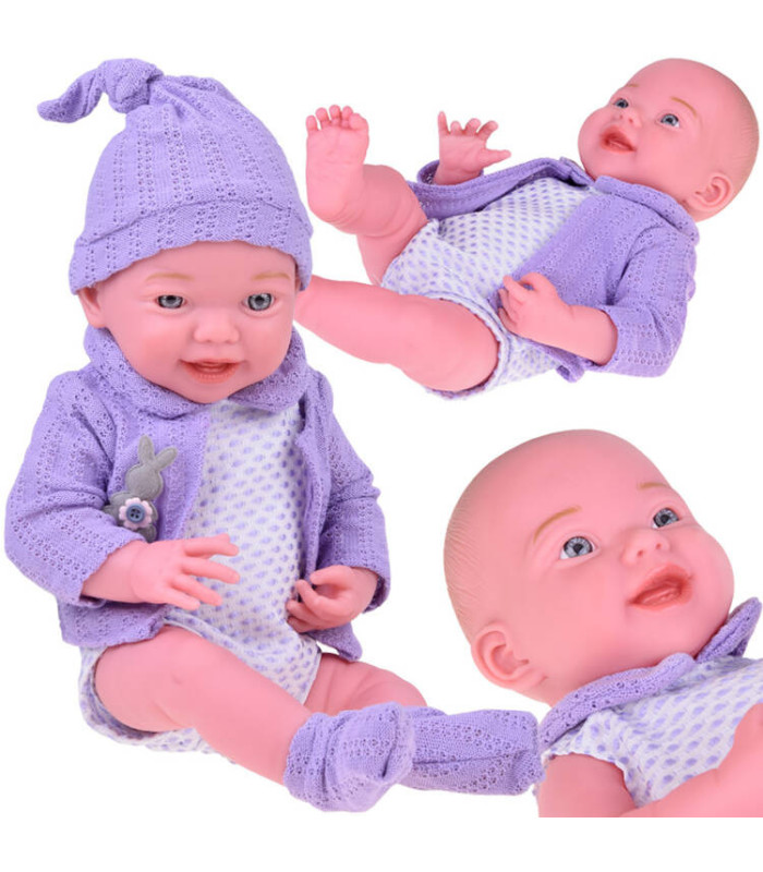 Lėlė kūdikis su violetiniu megztuku 40 cm