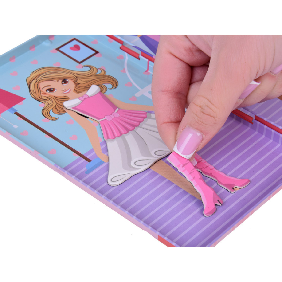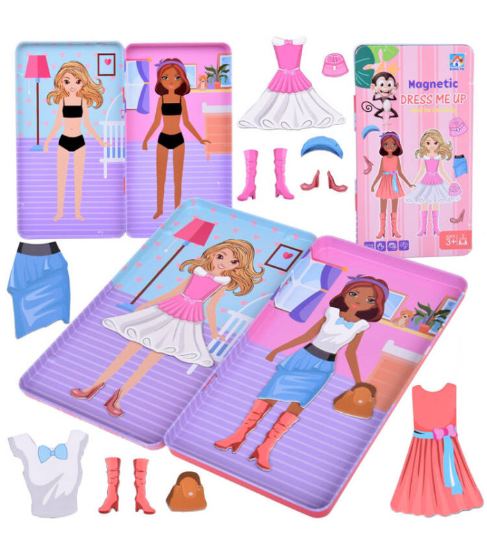 Ši žaisminga dėlionė sujungia edukacinius ir pramoginius elementus. Komplektą sudaro lenta su mergaitės figūra, kurią reikia aprengti drabužiais ir aksesuarais. Magnetinė dėlionė „Aprenk mane“ yra puikus pasirinkimas vaikams, mėgstantiems kūrybingą žaidimą. Ji padeda lavinti mažylių rankų miklumą, vaizduotę ir supažindina su mados pasauliu.
