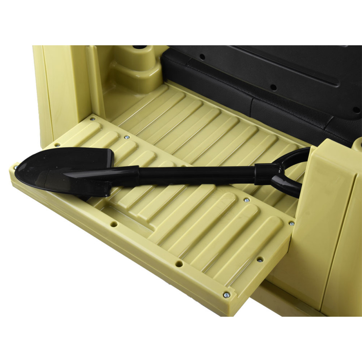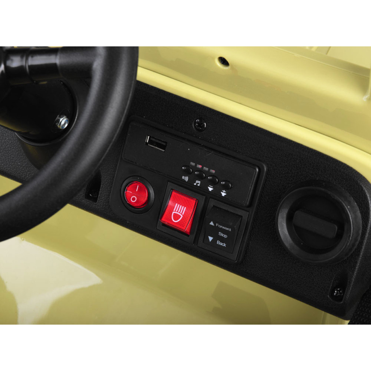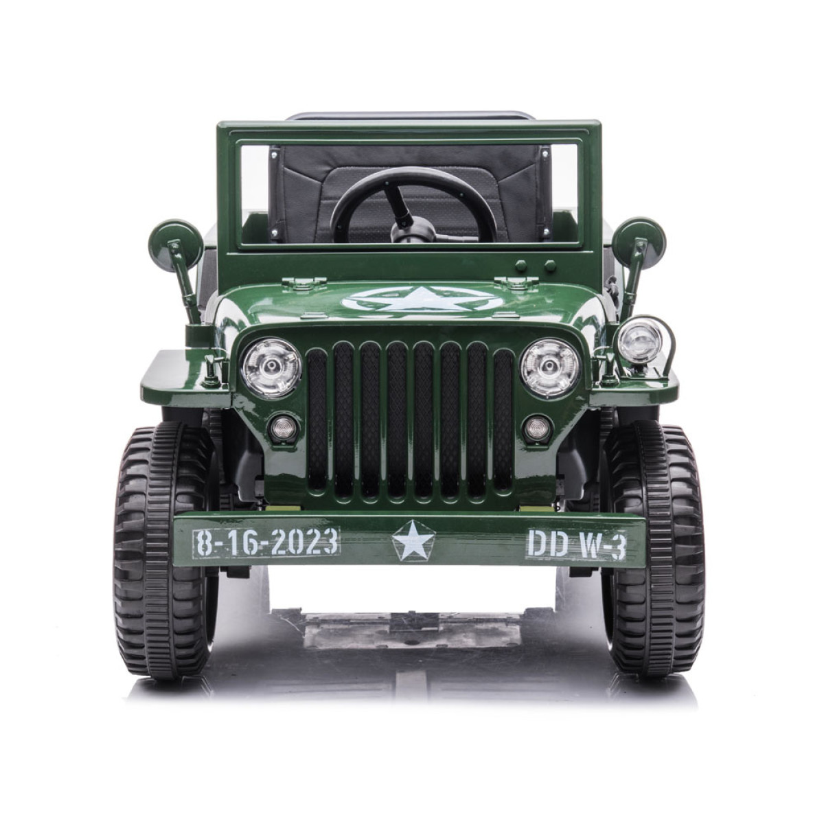 Karinis visureigis - puiki dovana vaikams, besidomintiems karine tematika. Šis galingas, retro stiliaus džipas yra paruoštas visiems kariniams iššūkiams. Jame yra visi būtini priedai ir sustiprinimai: bagažinė, kastuvas, garso ir šviesos efektai, patogi sėdynė ir saugos diržai. Automobilis gali būti valdomas pultu arba savarankiškai.