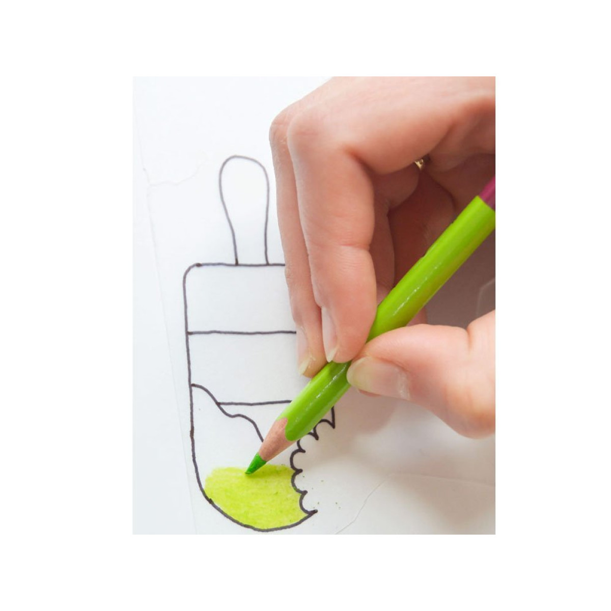 Tiesiog sekite kelis paprastus žingsnius: pieškite pagal šablonus, esančius rinkinyje, naudodami matinę specialios termiškai susitraukiančios plėvelės pusę ir nuspalvinkite. Tada iškirpkite nupieštą formą arba sukurkite savo originalius piešinius, atsižvelgdami į savo vaizduotę. Paruošus pasirinktas formas, įdėkite jas į orkaitę, įkaitintą iki 160°C, maždaug 2-3 minutes (per šį laiką plėvelė susitraukia ir sustiprėja). Po trumpo laiko galite džiaugtis rankų darbo dekoracijomis.
