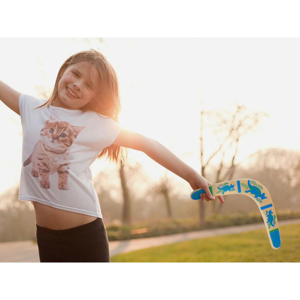 - Edukacinės Vertės: Žaidimas su bumerangu taip pat gali suteikti edukacinių patirčių, pavyzdžiui, apie aerodinamiką, skrydžio fiziką bei Aborigenų Australijos kultūrą ir istoriją, iš kurios kilęs šis tradicinis žaislas.