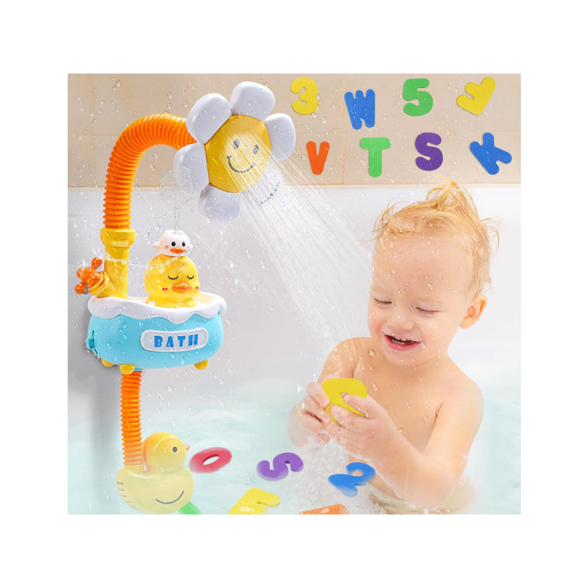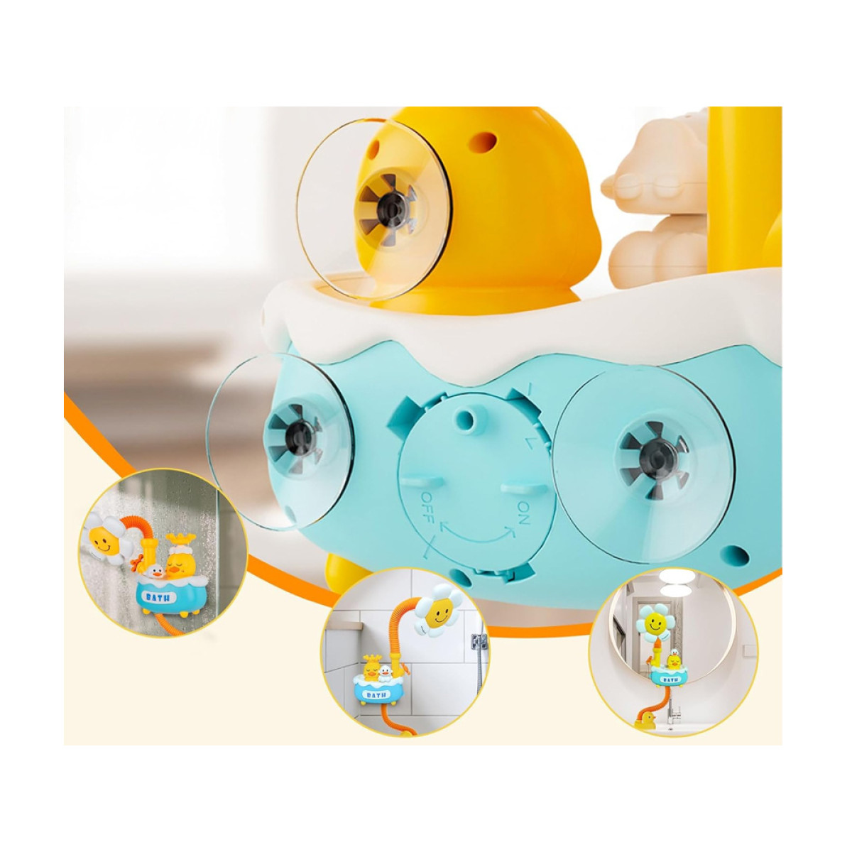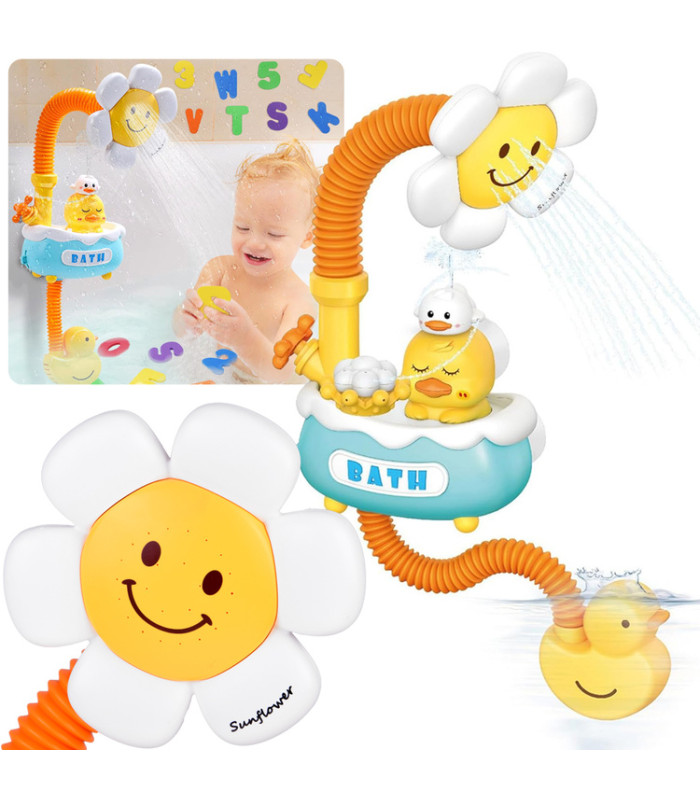 Mielas žaislinis dušas vaikams su gėle ir ančiuku - paverskite maudynes įdomia pramoga su besišypsančia gėlele ir linksmu ančiuku!