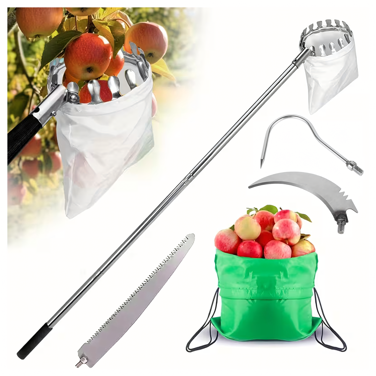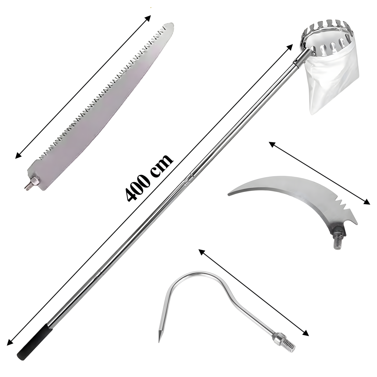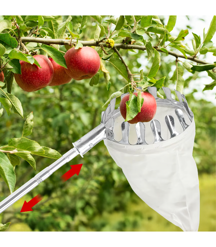 Mūsų teleskopinis vaisių rinktuvas yra idealus įrankis, skirtas patogiai ir lengvai surinkti vaisius nuo medžių. Dėl reguliuojamo iki 400 cm ilgio teleskopinio kotelio, galite pasiekti net aukščiausias šakas.