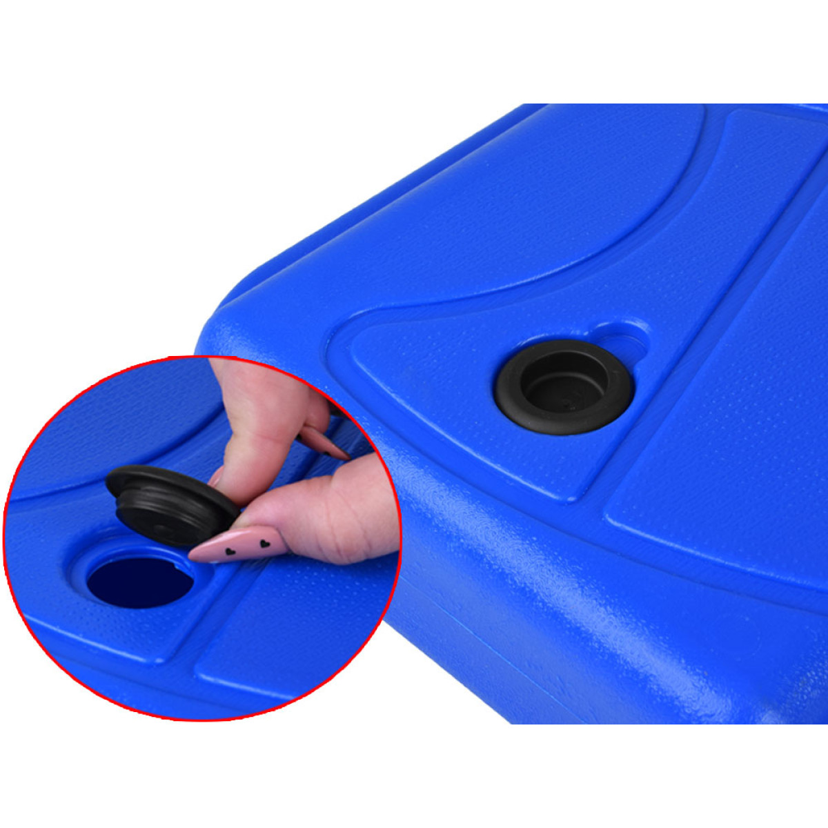 - Pagrindas: 29 cm x 24,5 cm x 7,5 cm – galima užpildyti vandeniu stabilumui užtikrinti