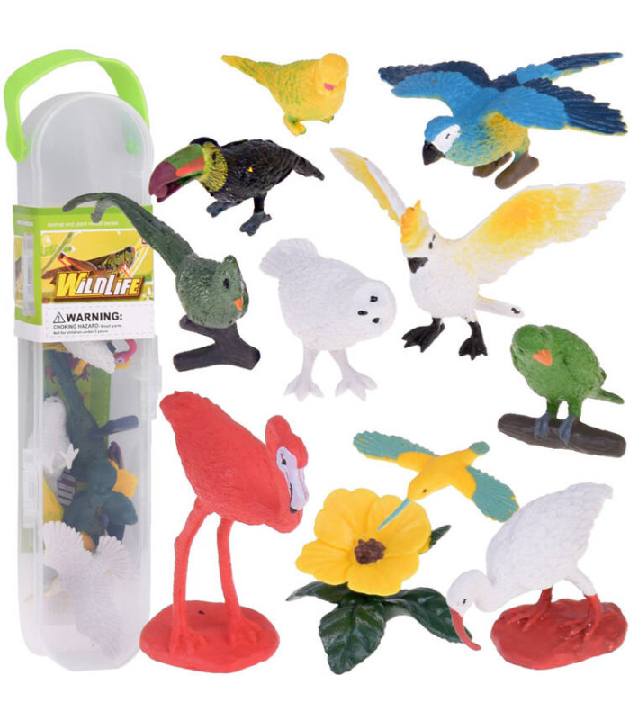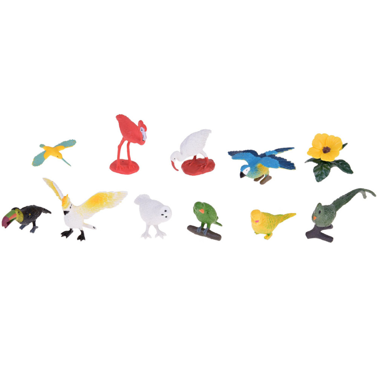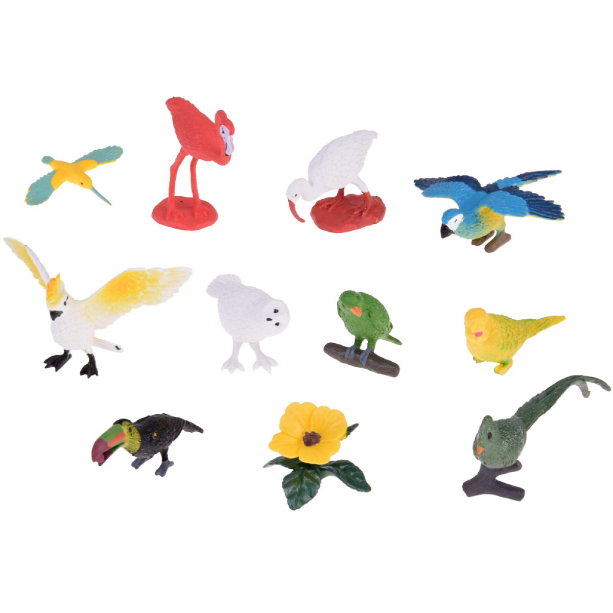Spalvotų egzotinių paukščių figūrėlių rinkinys, 10 vnt.