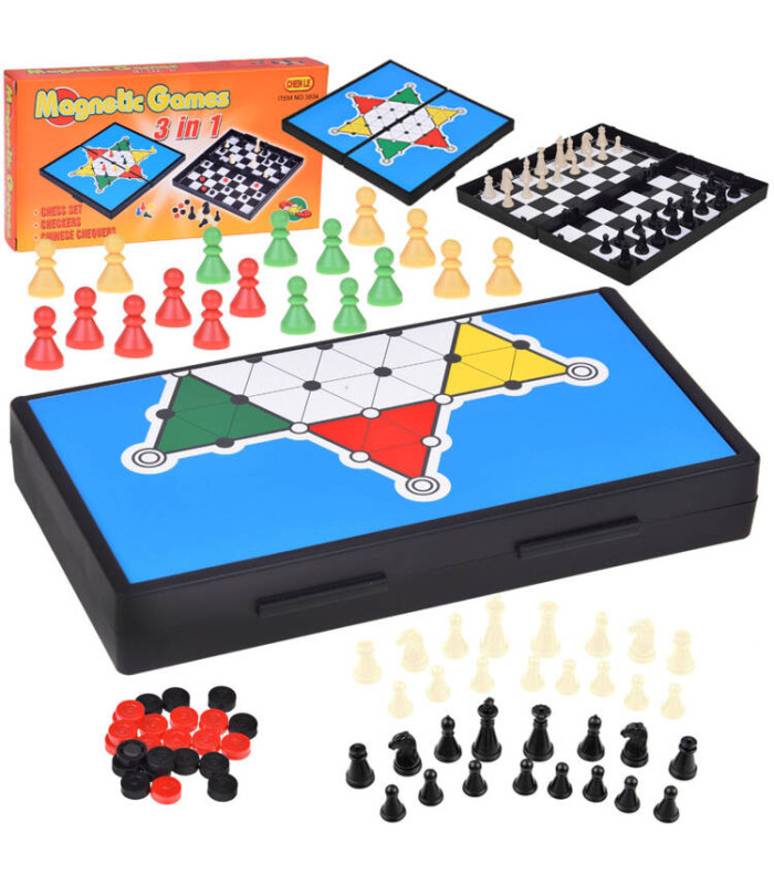 Magnetinis žaidimų rinkinys 3in1: šachmatai, šaškės, kiniškos šaškės