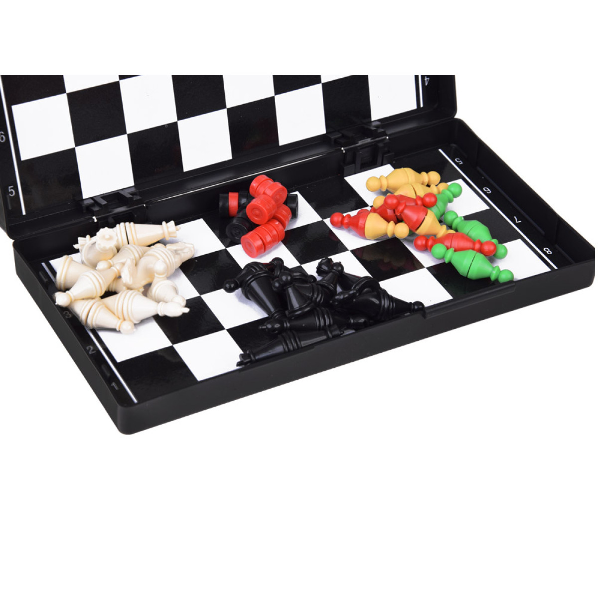 Šis magnetinis žaidimų rinkinys puikiai tinka tiek namuose, tiek keliaujant, užtikrinantis pramogą vaikams ir atsipalaidavimą tėvams. Naudojant magnetinius pėstininkus, žaidimas gali būti žaidžiamas automobilyje, traukinyje ar oro uoste, nesibaiminant, kad lengvas sukrėtimas sugadins visą partiją. Dėžutė pėstininkams taip pat yra dvipusė žaidimų lenta, o jos nedideli matmenys leidžia žaidimą pasiimti beveik visur!