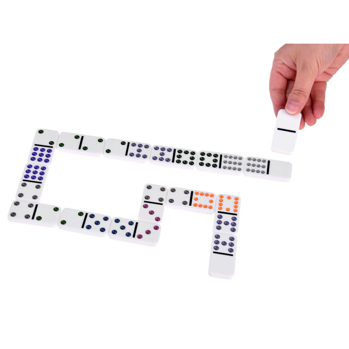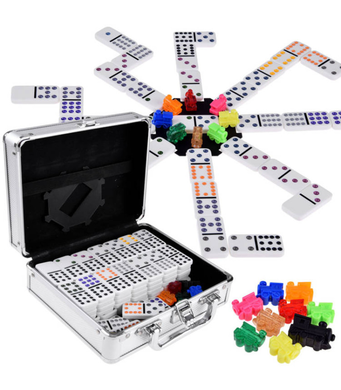 Domino yra viena iš seniausių ir žinomiausių žaidimų visame pasaulyje. Šis rinkinys siūlo 91 domino plytelę ir žaidimo priedus: užrašų knygutę su taškų skaičiavimo lentele, spalvotus traukinukus ir krumpliaratį Meksikietiškiam traukiniui.