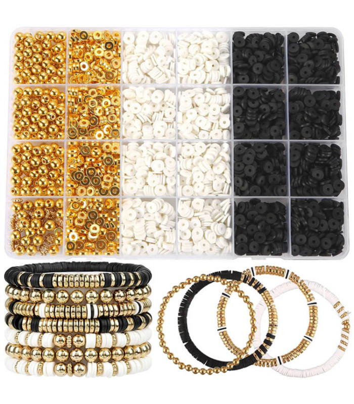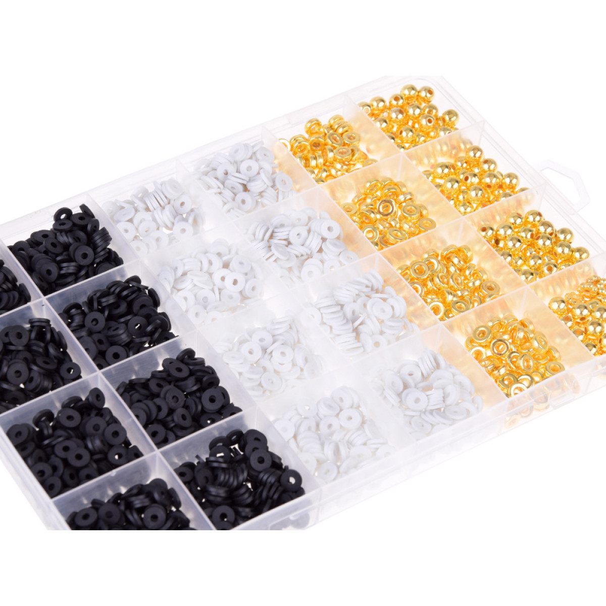 Pasitelkite savo kūrybiškumą ir sukurkite unikalią bižuteriją pagal savo idėjas. Kurti išskirtines, personalizuotas apyrankes su mūsų koralikų rinkiniu ir keiskitės jomis su draugais! Mūsų rinkinys leidžia sukurti ne tik apyrankes, bet ir vėrinius, auskarus ar žiedus – jus riboja tik jūsų vaizduotė! Mamoms, seserims ir draugėms nėra nieko vertingesnio už rankų darbo bižuteriją. Klasikinės spalvos – baltas, juodas, auksinis užtikrins, kad bižuterija bus išskirtinė ir labai elegantiška.