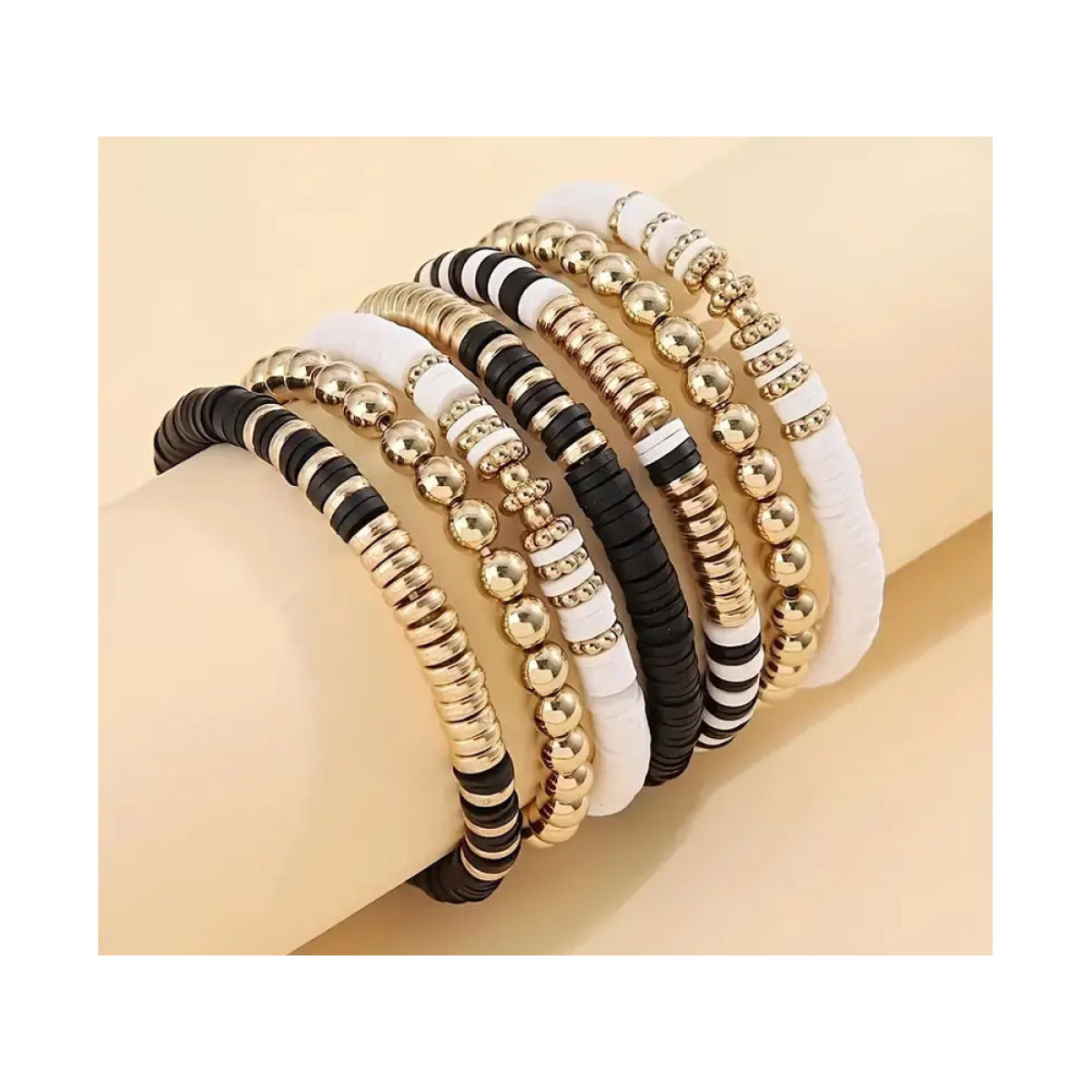 Zestaw Koraliki Złote Czarne Białe Bransoletka Przyjaźni