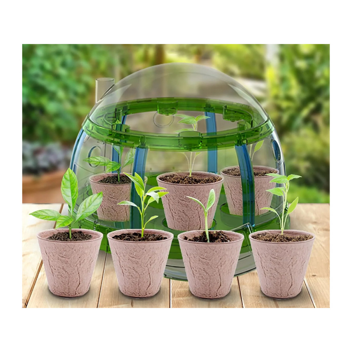 - Mini šiltnamis su atidaromu stogu ir durimis kiekvienam vazonėliui.