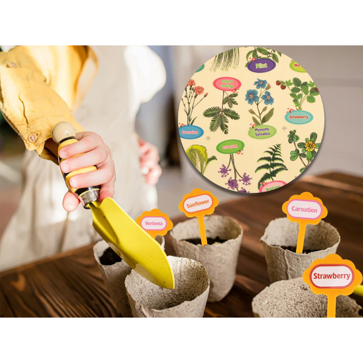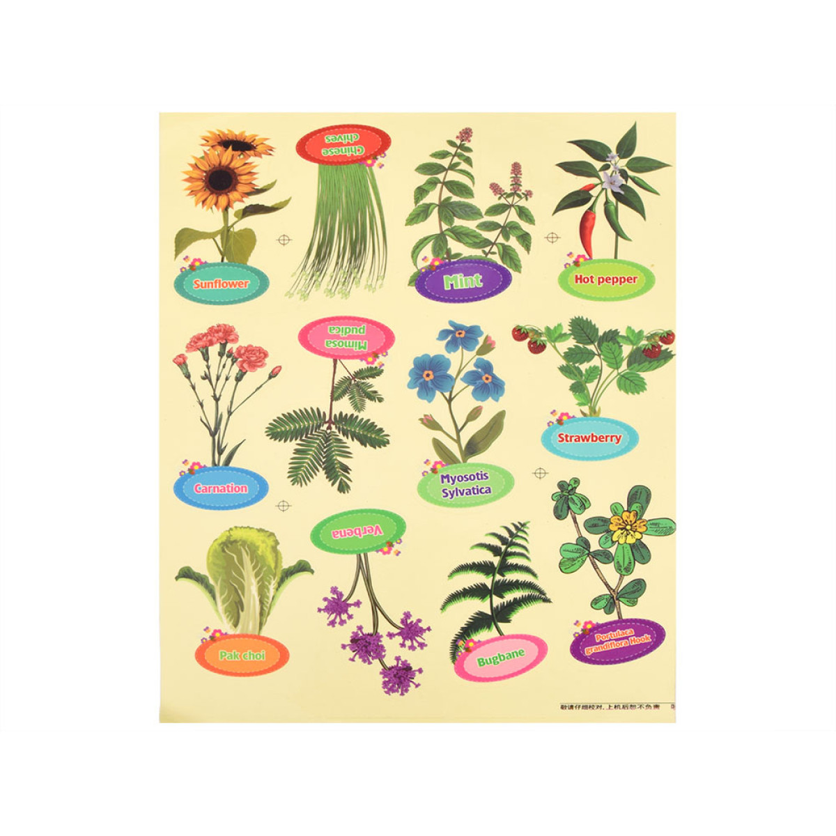 - 1 x lipdukų rinkinys (su augalų pavadinimais ir paveikslėliais)