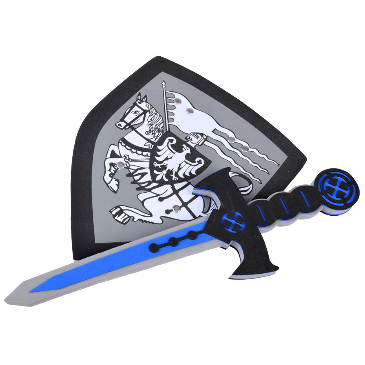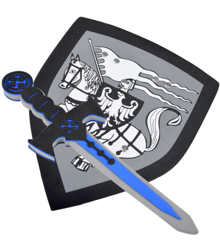 Pasiruoškite nepamirštamiems riterio nuotykiams su šiuo išskirtiniu rinkiniu! Rinkinį sudaro minkštas, putplasčio skydas ir kardas, pagaminti iš saugios medžiagos, idealiai tinka mažiems herojams. Elegantiška juoda ir balta spalvų gama bei riterio ant arklio motyvas ant skydo skatina kūrybišką žaidimą ir lavina vaizduotę.