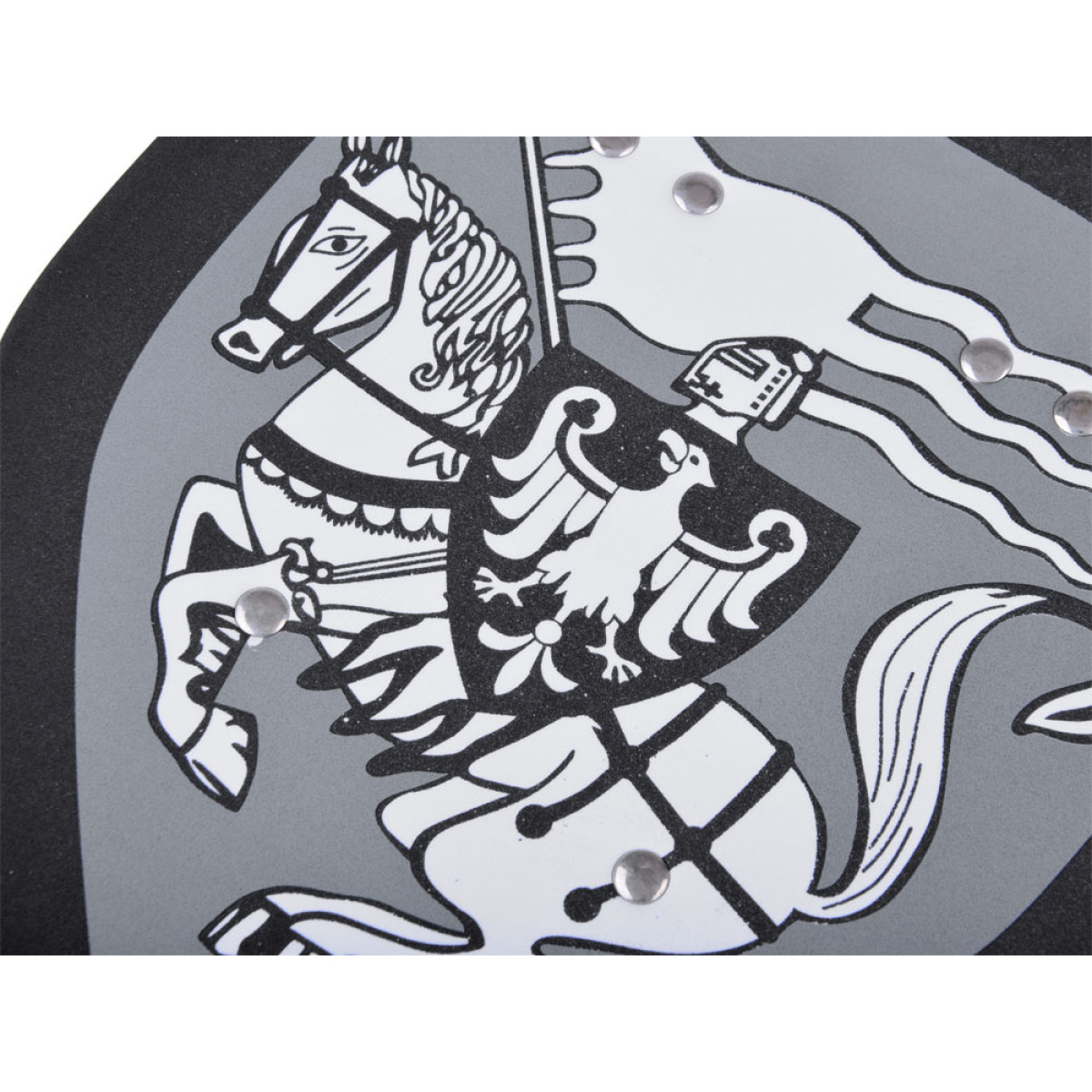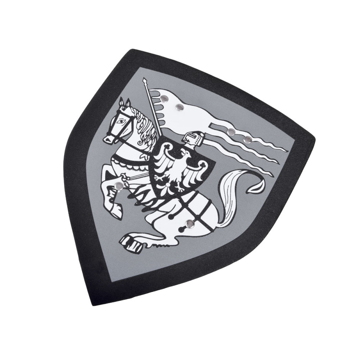 • 1 x putplasčio skydas (30 x 25 cm) su riterio ant arklio motyvu