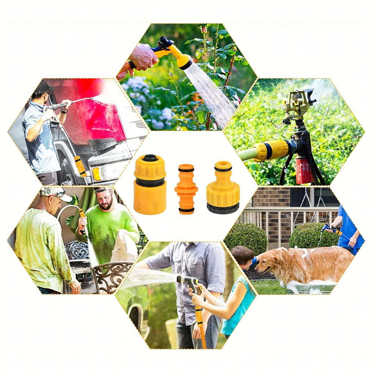 Šis rinkinys skirtas patogiam ir efektyviam sodo laistymui. Idealiai tinka 1/2 ir 3/4 colio žarnoms, užtikrinant lengvą ir greitą prijungimą prie krano.