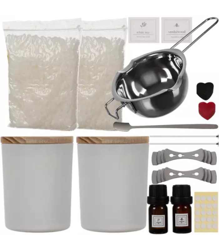 - SPECIFIKACIJA: žvakių skaičius po pagaminimo: 2; stiklainio spalva: balta; stiklainio talpa: 200ml; vaško lydymosi indo talpa: 400ml; dagčio ilgis: 12 cm; 1 pakuotės vaško svoris: 140g; eterinio aliejaus talpa: 5ml; stiklainio matmenys: 8,5 x 7,5 cm; komplekto svoris: 857g; svoris rinkinyje: 977g.