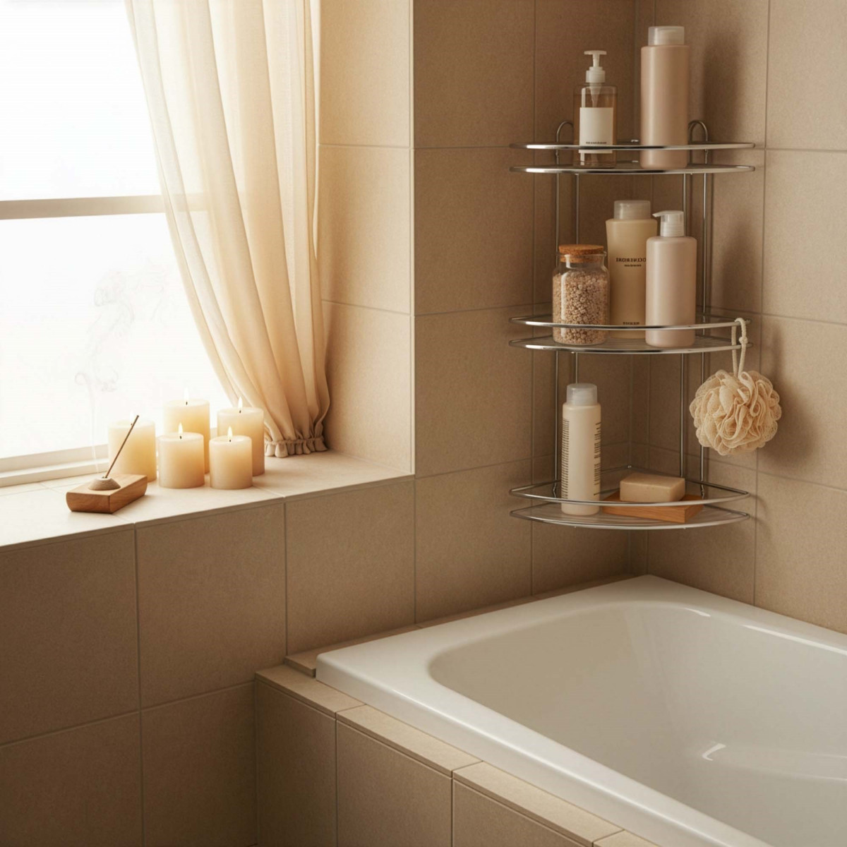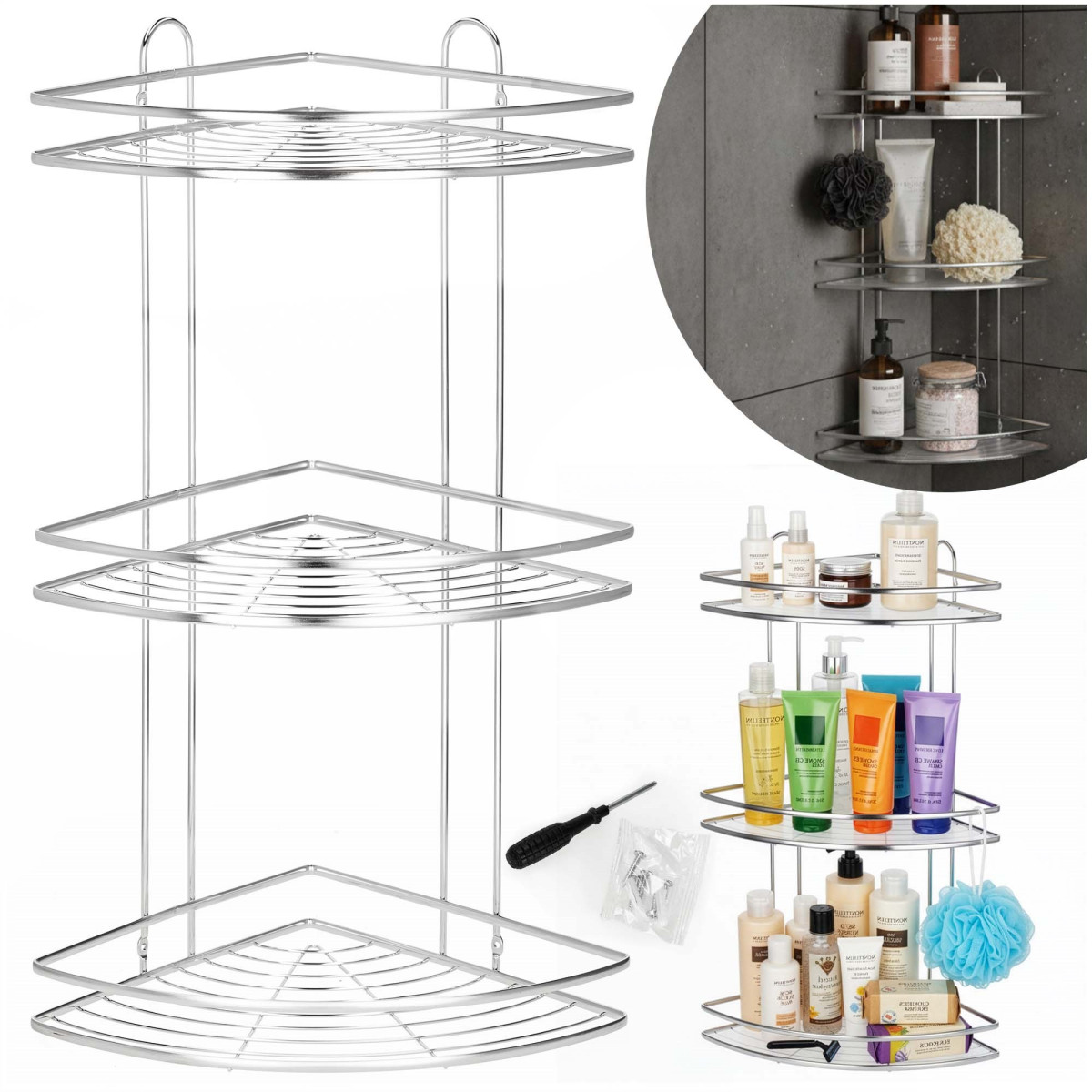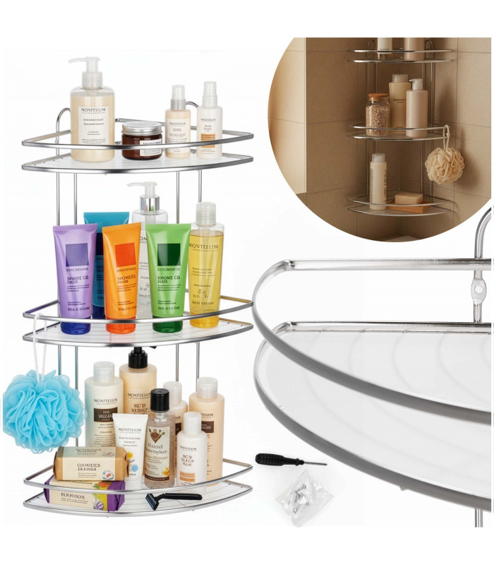 Praktiška ir kompaktiška vonios kambario lentyna padeda patogiai laikyti kasdien naudojamus daiktus ir efektyviai išnaudoti kampinę erdvę. Trikampė forma leidžia lentyną lengvai pritaikyti vonios kambaryje, o nerūdijantis plienas užtikrina ilgaamžiškumą ir atsparumą drėgmei.