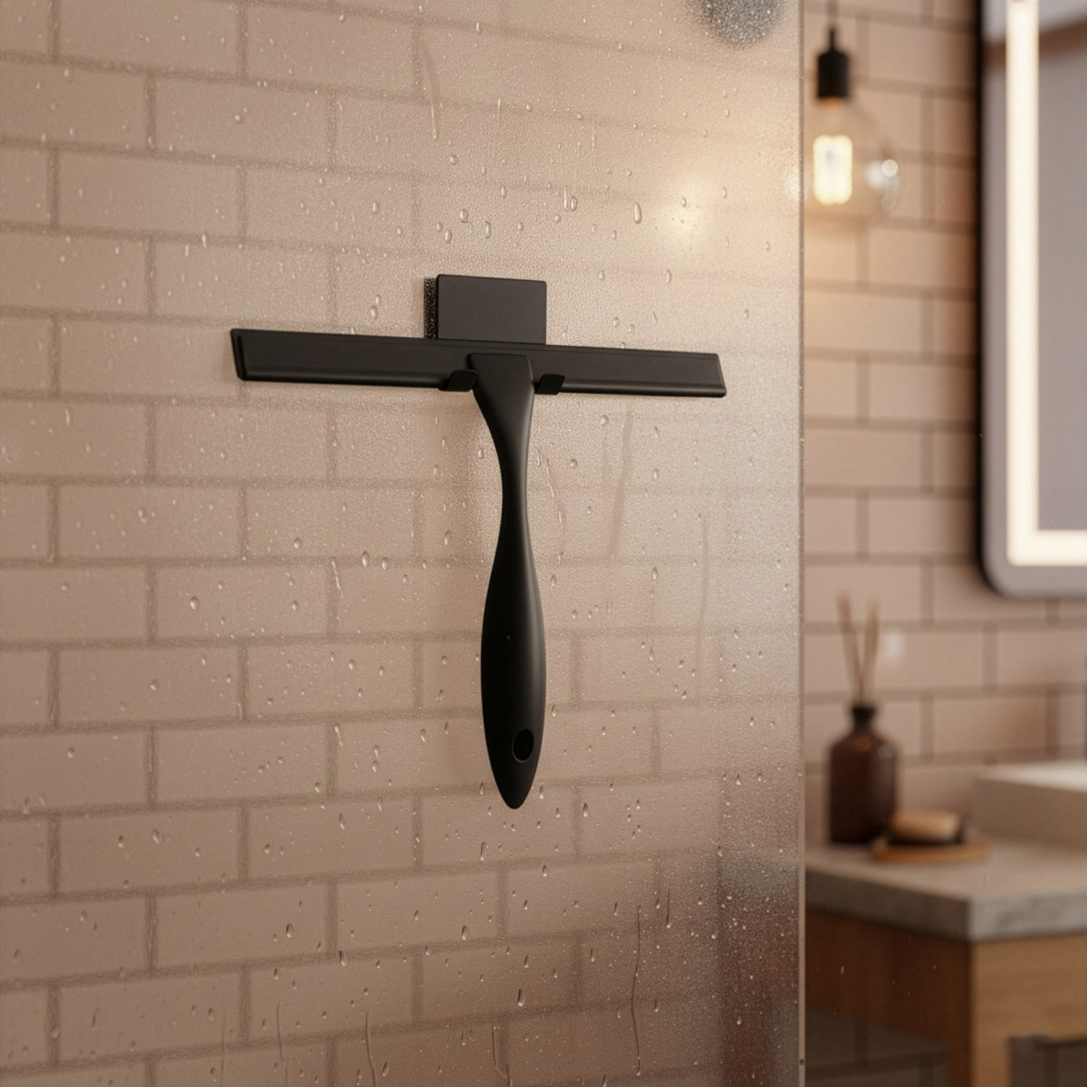 Vonios kambario stiklo valytuvas su guma padeda greitai ir patogiai pašalinti vandens lašus nuo stiklo, veidrodžių ir kitų lygių paviršių. Tai praktiškas pasirinkimas kasdieniam naudojimui vonios kambaryje, nes padeda palaikyti švarą ir sumažina vandens žymių susidarymą.