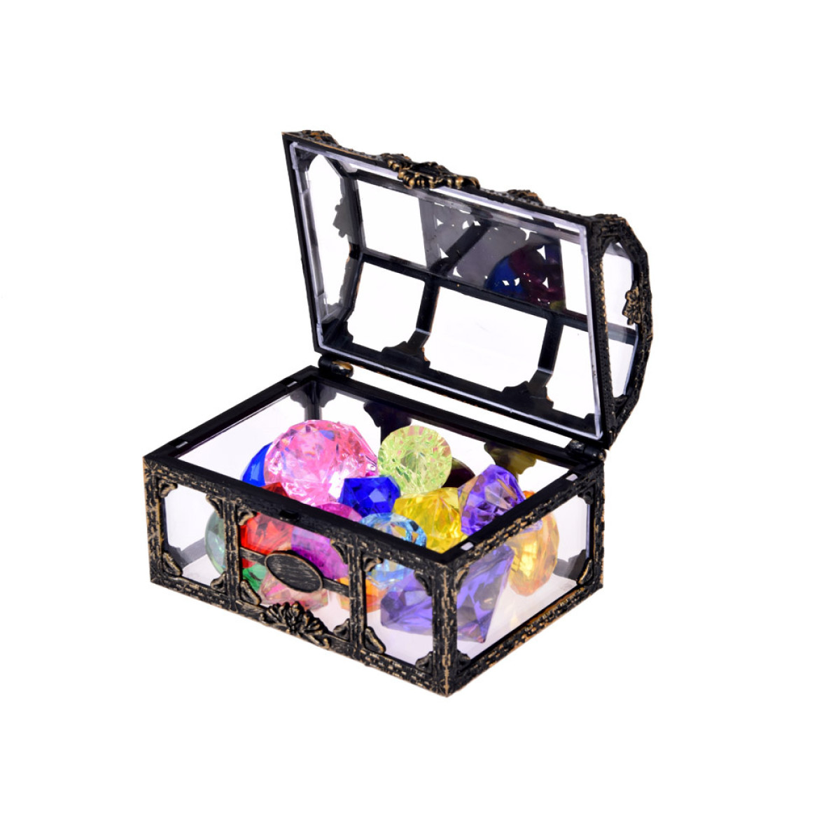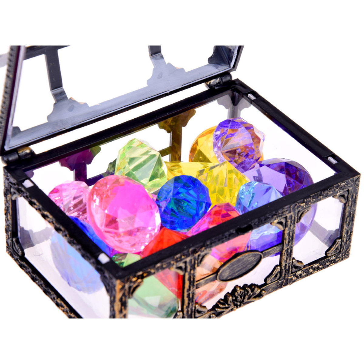 Piratų skrynia su spalvotais kristalais – tai puiki galimybė įsijausti į piratų nuotykius, lobių ieškojimą ar tiesiog džiaugtis viskuo, kas blizga. Ši žaislinė skrynia slepia savyje paslaptingą ir magišką lobį – net 17 spalvotų kristalų skirtingų dydžių, kuriuos reikia saugoti nuo nepageidaujamų svečių.