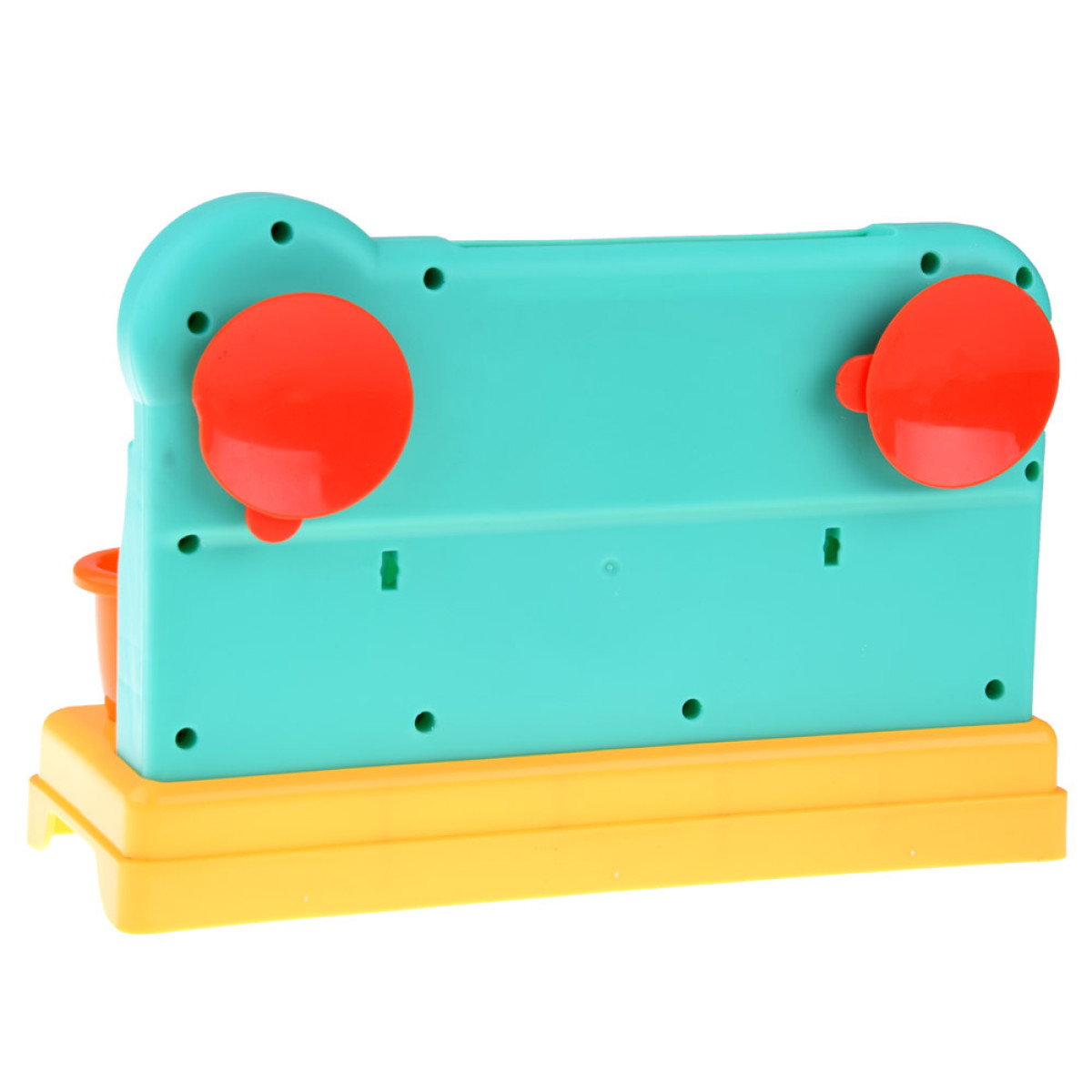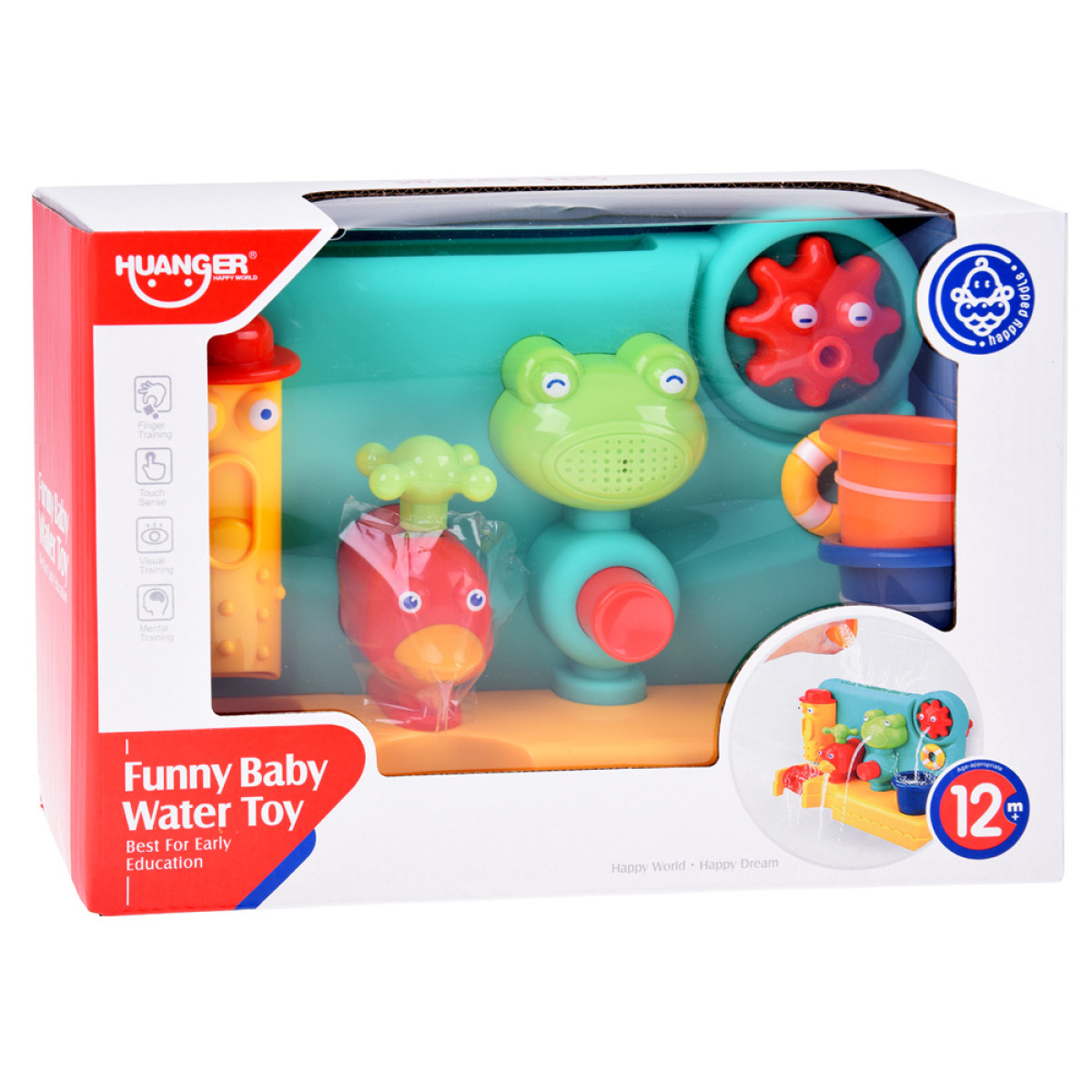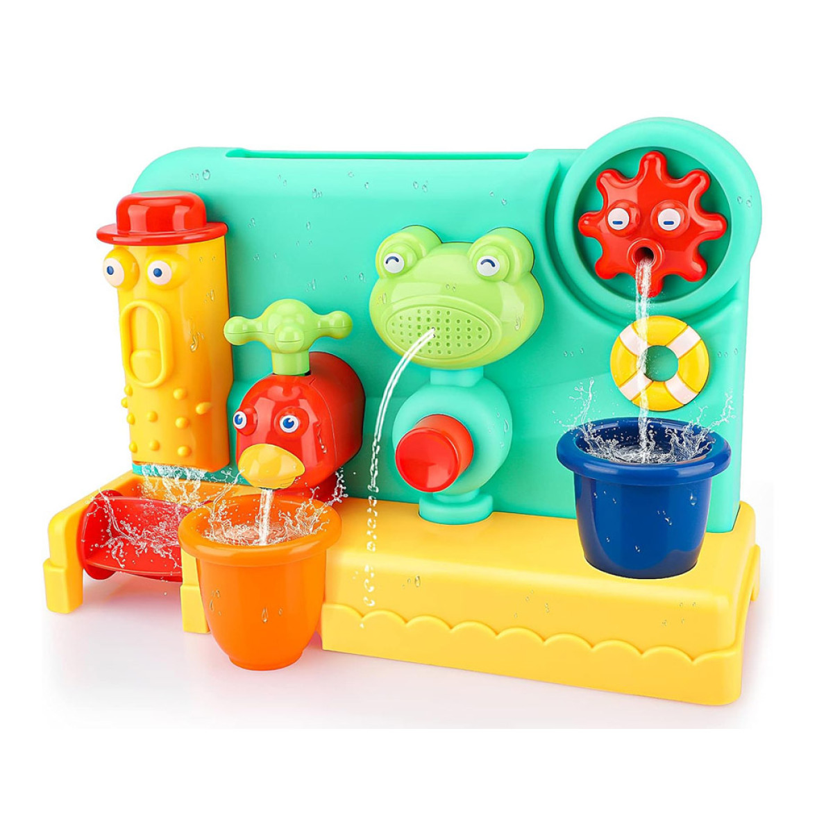 Vanduo pateks į žalią kaktusą su kepure - prasiskverbdamas jis suks malūnėlį, esantį po juo. Norėdami išlaisvinti vandenį iš raudono paukštuko, atsukite kranelį - kaip tikroje kriauklėje! Raudonas mygtukas veikia kaip pompa - paspaudus jį, iš mielos varlytės burnos ištrykš vanduo. Iš saulutės angos išlies vanduo, sukeldamas fontaną. Po saulute yra vieta puodeliui. Naudodami puodelius, galite pilti vandenį į žaislą arba stebėti, kaip jis teka per dugno skyles.