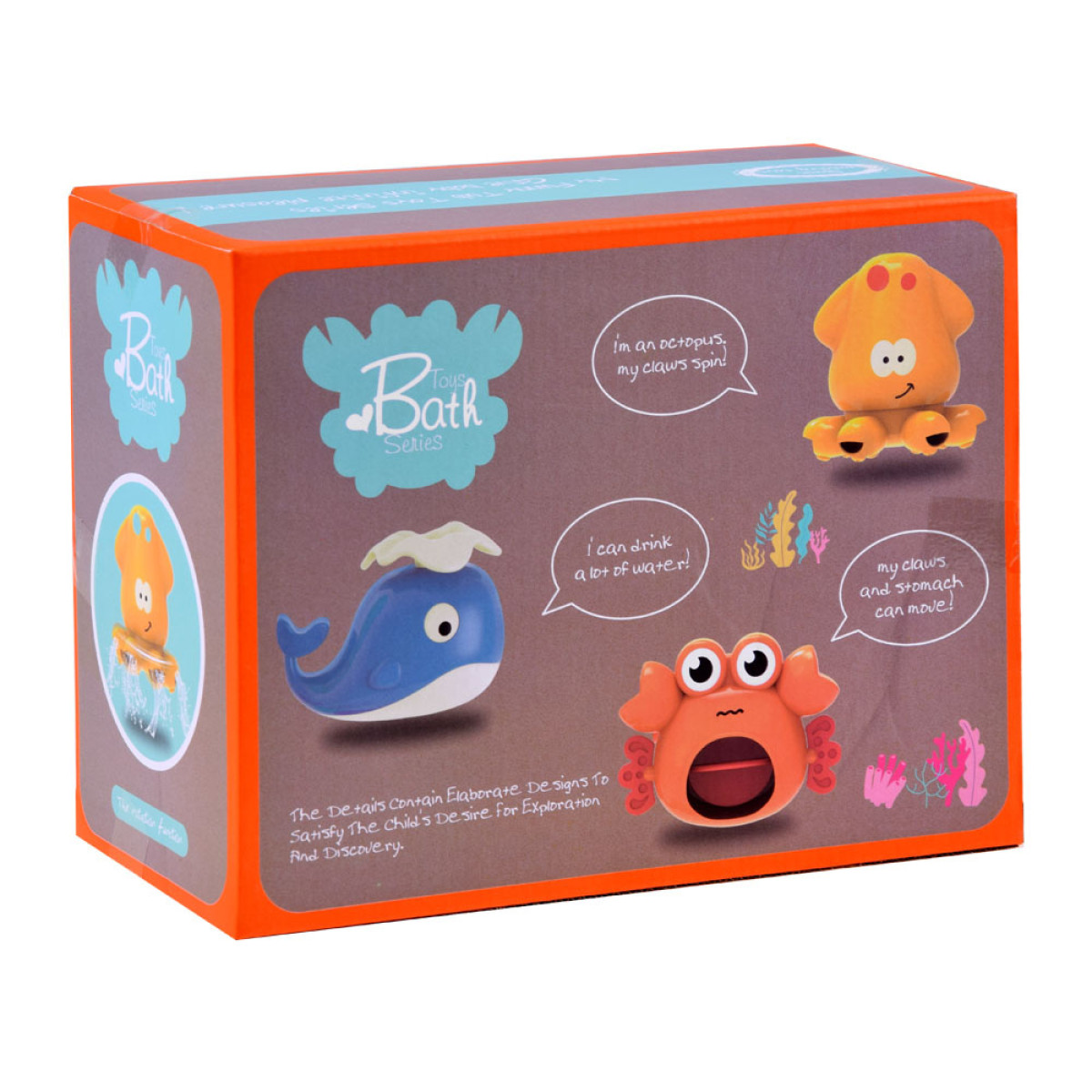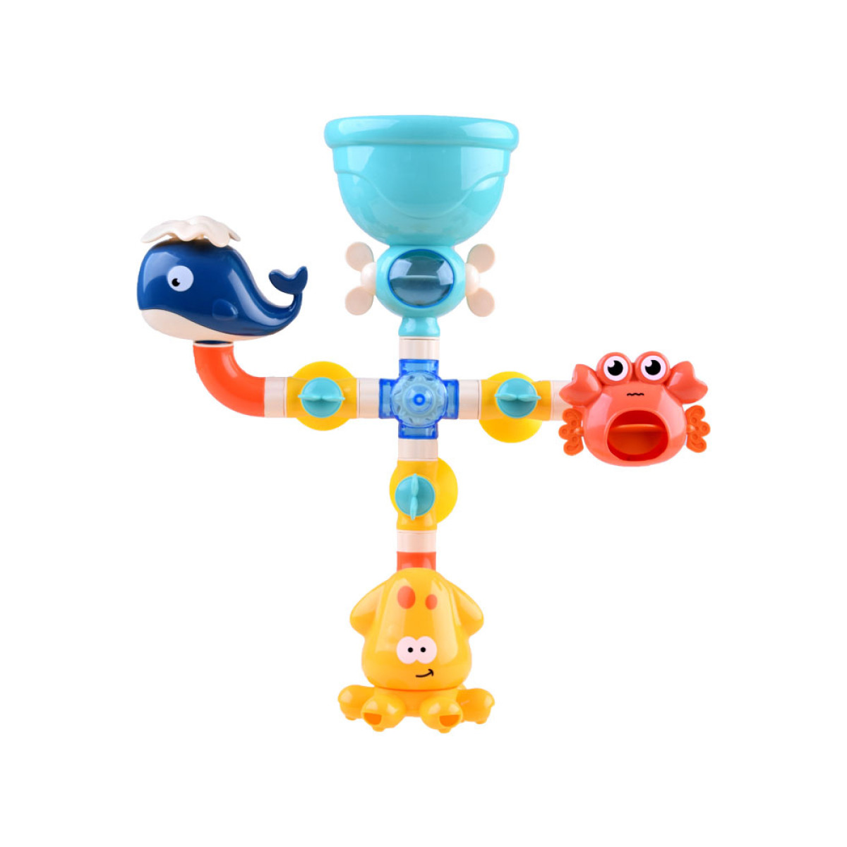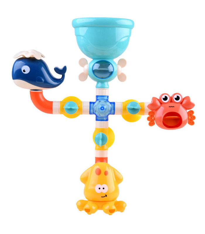 Įpilkite vandens į žaislo viršų, ir stebėkite, kaip jis teka per vidų, išsiverždamas fontanu arba kriokliu. Įmontuoti piltuvėliai palengvina vandens įpylimą, o saugios medžiagos užtikrina patikimą naudojimą. Spalvingas dizainas ir jūrų gyvūnų formos - aštuonkojis, banginis ir krabas - suteikia žaislui jūros atmosferą. Žaislas lengvai surenkamas ir išardomas, leidžiantis vaikams kurti įvairias kombinacijas. Galite keisti gyvūnų išdėstymą, atjungti vamzdelius arba uždaryti vandens srautą su geltonais vožtuvėliais.